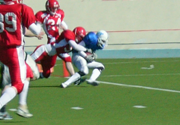A-nuorten SM-sarjassa pelattiin toinen kierros A-nuorten SM-sarjan toinen kierros TAFT - Trojans 0-40 (0-32) Helsinki Roosters tuli soikiopalloleikkiin mukaan kohtaamalla Tampereen Saintsin. Pelin ensimmäinen jakso oli äärimmäisen tasaväkinen. Joukkueet tekivät maaleja vuorotellen. Tampereen hahmo oli laitahyökkääjä Ilkka Laitinen teki kaksi pitkää maalia Jarkko Parikan syötöistä. Patrioottien tukimies Jere Korpinen vastasi suurimmasta osasta taklauksia. Varsinainen option-hyökkäys toimi ajoittain Matti Airaksisen kantaessa pallossa. Roosters vastasi pelinrakentaja Lehtisen heittomaaleilla Julius Majanderille ja Matias Sarvelalle. Pirteää ja vaarallista pallonkantamista punanutuista esitti Max Ehlert. Roostersin toinen lisäpistepotku blokattiin ja näin tauolle marssittiin manselaisten johdossa 13-14. Toisella jaksolla Tampereen perushyökkäys yskähteli, kun pallon siirtäminen option pitchien kautta oli epävarmaa. Roostersin neljän wr:n heittopeliä kannatteli useissa draiveissa Patrick Asen, joka nopeajalkaisena laiturina löysi kiinniottoon tarvittavan tilan. Uusi monipuolisen urheilutaustan omaava pelaaja oli Roostersin Juha Kärnä, joka kipaisin receiver screenin päätteeksi lähes puolesta kentästä maaliin. Roosters siirtyi johtoon potkun onnistuttua 20-14. Toinen puolisko oli kovaa vääntämistä, jossa helsinkiläiset olivat piirun verran parempia ja voittivat ottelun lopulta 28-14. Toisessa Velodromin derbyssä vastakkain olivat TAFT ja Trojans. Ottelun sävel oli selvä alkutahdeista asti, kun smash mouth footballia pelannut Trojans survoi maaleja kovalla prosentilla. A-nuorten sarjan yksi parhaista hyökkäyslinjoista teki aukkoja, joista raumankyntäjänä tunnettu Sami Toivonen juoksi Ilkka Koirasen toimiessa veturina. Toivosta tuurasivat hyvällä keskiarvolla Ville Järviö ja lupaavia otteita esittänyt 16-vuotias Jaska Salminen. Tahtipuikko pysyi terävästi kapellimestari Joonas Anderssonin käsissä, varsinkin kun hän löysi Ville Veneen useamman kerran maalialueelta. Trojans puolustus on tasapainoinen ja pystyy pelaamaan vahvaa 11-miehen heitto- ja juoksupuolustusta. Puolustuslinjan trio Jalonen-Revo-Rastas tulee aiheuttamaan painajaisia vastustajille jatkossa. Vaahteraliigatasoinen tukimieskaarti täytti juoksukujat napakasti. Peli oli puoliajalla 0-32, Trojansin pelatessa kaikki lisäpisteet. TAFT pelasi heittohyökkäystään ailahtelevasti Trojansin paineen johdosta. Pelinrakentaja Kadmiry sai kovan kolauksen rähmäystilanteen päätteeksi ja joutui Taft injury reserviin, joka harmittavasti kasvoi myös avainpuolustaja Parikalla. TAFT pystyi juoksupainotteisella hyökkäyksellä pitämään toisen puoliskon tasaisena ja onnistui Juuso Laherman juoksulla kaventamaan tilannetta, mutta yrityksen aikana tuomarit löysivät hyökkäysvirheen, joka hylkäsi maalin. Kimmo Jokiheimo teki Taftista näyttävän syötönkatkon. Turun Trojans teki vielä yhden maalin toisella puoliskolla ja voitti ottelun selvästi 0-40 ja siirtyi A-nuorten sarjan kärkeen. Kouvolassa Wolverines teki jälleen hyökkäyksessä 23 pistettä kotijoukkue Indiansin jäädessä nollille. Ottelutulos 0-23 (0-10) Wolverines jatkaa puhtaalla pelillä sarjassa.