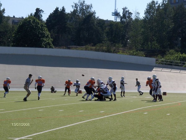 Viikonloppuna Helsingissä nähtiin naisten amerikkalaista jalkapalloa sekä lauantaina että sunnuntaina. Jenkkifutis viikonlopun Velodromilla avasi Roosters emännöimällä Jaguarsia Jyväskylästä. Jaguars oli ottanut edellisenä sunnuntaina tiukan voiton, mutta Roostersille peli oli kauden ensimmäinen. Pelin alussa molemmat joukkueet pelasivat hermostuneesti ja tilanteet vaihtelivat nopeasti. Joukkueiden puolustukset kuitenkin pelastivat tilanteet ratkaisevissa paikoissa ja peli pysyi tasaisena ensimmäisen neljänneksen loppupuolelle. Tuolloin Roostersin onnistui puhkaista Jyväskylän puolustus ja keskushyökkääjä Katri Laine pääsi juhlimaan pelin ensimmäistä maalia. Potkaistun lisäpisteyrityksen jälkeen numerot olivat 7-0. Pelin toinen neljännes mentiin suurelta osin Roostersin painostaessa ja helsinkiläiset myös kartuttivat pistetiliään Katri Laineen päivän toisella maalilla lisäten johtoaan lukemiin 13-0. Jyväskyläläisillä oli omat paikkansa tasoittaa peli helsinkiläisten virheistä, mutta Roostersin puolustus ja erityisesti tehotaklaajat Liina Mancuso ja Piia Perälä pysäyttivät pallonkantajan ennen kuin tämä ehti maalialueelle. Aivan puoliajan lopussa Roosters pääsi etenemään lähelle jyväskyläläisten maalialuetta ja ennen puoliaikavihellystä Katri Laine viimeisteli kenttäpotkumaalilla Roostersille 16-0 johdon. Toinen puoliaika alkoi helsinkiläisten vahvalla etenemisellä kohti Jaguarsin maalia. Jaguars kuitenkin kokosi rivinsä juuri oikeaan aikaan ja pysäytti Roostersin vain 9 jaardin päähän maalista. Seurannut Jaguarsin hyökkäysvuoro päättyi pallon rähmäykseen, jonka helsinkiläiset peittivät aivan maalin tuntumassa. Roosters ei hukannut saavuttamaansa loistavaa kenttäasemaa vaan Katri Laine viimeisteli hattutempun ja helsinkiläiset olivat siirtyneet 22-0 johtoon. Jaguars ei lannistunut vaan yritti sitkeästi kavennusta, mutta eteneminen pysähtyi helsinkiläispuolustajan ottamaan syötönkatkoon. Tämän jälkeen Roosters lisäsi johtoaan vielä kahdella maalilla ja pelikellon näyttäessä peliajan päättymistä olivat luvut tulostaululla 34-0. Sunnuntain kamppailussa kohtasivat GS Demons Helsingistä ja Northern Lights Oulusta. Jo ottelun alkuhetkistä oli selvää kumman joukkueen pillin mukaan pelissä tanssittaisiin. Muutamaa lipsahdusta lukuunottamatta Demons hallitsi kenttätapahtumia täydellisesti. Oululaiset tuntuivat olevan kuin unessa Demonsin pelinrakentajan Jenni Wahlbergin löytäessä vastaanottajia heitoilleen ja keskushyökkääjä Anette Bäckmanin juostessa hyökkäyksen linjan hienojen blokkien takana. Puoliajalle mentiin karuissa numeroissa 34-0. Toisella puoliajalla oululaiset pääsivät etenemään jonkin verran juosten ja ottelun loppua kohden puolustuskin onnistui ajoittain Demonsin murhaavan tehokkaan hyökkäyksen pysäyttämisessä. Kuitenkin helsinkiläisjoukkue Demons hallitsi kenttätapahtumia edelleen miten tahtoi. Tuomarin puhaltaessa pilliin viimeisen kerran olivat taululla oululaisittain murheelliset lukemat 64-0. Oulun joukkueen parhaana palkittiin kaksi syötönkatkoa napannut Laura Haapaniemi ja vastaavan kunnian Demonsin puolelta sai tehokkaasti pelannut Tiia Meskanen. Koko ottelun parhaan pelaajan palkinnon pokkasi Demonsin Ulla Repo, joka aiheutti vaikeuksia Northern Lightsin puolustukselle aina pallon saatuaan. Sarjataulukon kärkeen nousi Helsinki GS Demons ottamalla kauden toisen voittonsa. Perää pitää tällä hetkellä Oulu Northern Lights. Lisätietoja: /sarjat/naiset/amerikkalainen_jalkapallo/sarjataulukko/ |