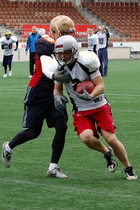 Suomen miesten maajoukkueen päävalmentaja Hannu Koivusalo odottaa lauantain Ruotsi-ottelua luottavaisin mielin. ”Viikonlopun leiristä jäi positiivinen fiilis. Miinuksena oli se, että moni leirille kutsutuista jäi pois loukkaantumisten takia, ja materiaali oli kapea. Mutta saimme systeemin ajettua hyvin sisään.” Vuosi sitten Suomi kärsi niukan tappion Ruotsille vieraskentällä. Vuoden takaiseen ei ole tehty suuria muutoksia. ”Joitain pikkuasioita on muutettu pelaajamateriaalimme mukaan, mutta peruspaketti on samanlainen”, tasapainoisen hyökkäyspelin nimeen vannova Koivusalo kertoo. Vastaan asettuva joukkue on melkoinen kysymysmerkki. Hallitsevan Euroopan mestarin koko valmennustiimi on vaihtunut. ”Emme tiedä mitä sieltä tulee. Mutta eiköhän Ruotsin puolustus ole ainakin aika samanlainen kuin aiemmin”, Koivusalo pohtii. Nuoruutta ja vankkaa kokemustaSuomen joukkue on sekoitus kokemusta ja nuoruutta. Kokeneimmat pelaajat ovat syntyneet 70-luvun polivälissä, nuorimmat vuonna 1990. Konkarit naureskelivatkin viikonlopun leirillä, että maajoukkuerookiet ovat syntyneet silloin kun kokeneimmat aloittelivat pelaamistaan. Pelaajistossa katseet ja paineet kohdistuvat luonnollisestikin joukkueen nuoriin pelinrakentajiin. Roostersin 19-vuotias Janne Lehtinen ja Trojansin 18-vuotias Joonas Andersson ovat Petrus Penkin seuraajia maajoukkueen hyökkäyksen johdossa. Koivusalon mukaan nuorten maajoukkuekaksikko oli leirillä tasaväkinen, ja vielä ei ole edes päätetty kumpi aloittaa pelin. Koivusalo harmittelee, että suomalaiset pelinrakentajat jäävät Vaahteraliigassa vähälle peliajalle. Andersson pelasi Trojansissa muutaman pelin jenkkipelinrakentajan loukkaannuttua, mutta Lehtinen pelasi seurajoukkueessaan lähinnä laitahyökkääjänä. ”Kyllä heistä hyvä tulee, kunhan he saavat kokemusta alle.” Koivusalon mukaan Lehtisen ja Anderssonin pelityyleissä ei ole suuria eroja. ”Molemmat lukevat peliä hyvin. Andersson on ehkä hanakampi juoksemaan itse.” Koivusalo on tyytyväinen joukkueensa keskushyökkääjäkalustoon. Butchersin Markus Haverinen on aloittava keskushyökkääjä, mutta leveyttä löytyy. ”Saintsin Christoffer Anttila tulee olemaan kova jatkossa kokemuksen karttuessa. Jaguaarien Akumatti Leskinen saa lauantaina myös paljon vastuuta. Kaiken kaikkiaan keskushyökkääjätilanne on parempi parina viime vuonna.” Koko Suomen maajoukkueprojekti nuorennusleikkauksineen tähtää seuraaviin EM-kisoihin. Vaikka suomalaisen jenkkifutiksen kannalta ensi vuoden kisojen peruminen oli paha pettymys, niin ainoastaan maajoukkueen kannalta ajateltuna kisojen siirtyminen vuodella voidaan nähdä positiivisenakin asiana. ”Nuorella joukkueella on nyt vuosi enemmän valmistautumisaikaa”, Koivusalo katsoo kohti Saksan vuoden 2010 kisoja. |