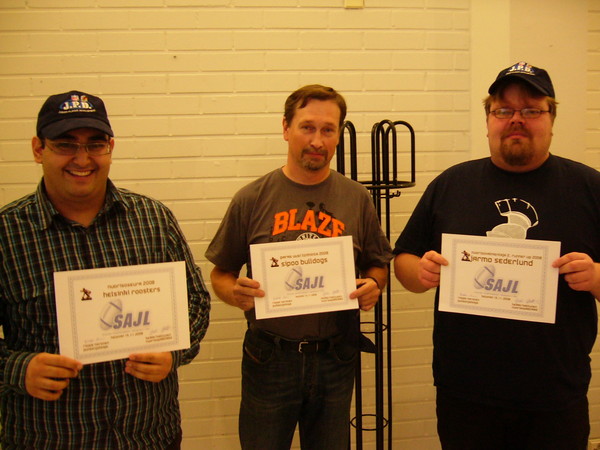 vas. SAJL 2008 NUORISOSEURA ROOSTERS nuorisopäällikkö Erfan Jahangiri, UUSI TOIMINTA Sipoo Bulldogsin Mikko Ranta-Aho ja nuorisovalmentaja äänestyksen kakkonen Jarmo Sederlund, Vantaa.