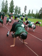 Eripelipaikat harjoittelevat varusteet päällä kaksi päivää Pajulahden maisemissa. Tehokkaan ja tiiviin opetuksen on tarkoitus kehittää leiriläisten henkilökohtaisia tekniikoita paremmiksi ja lisätä tietoutta puolustuksesta ja hyökkäyksestä.