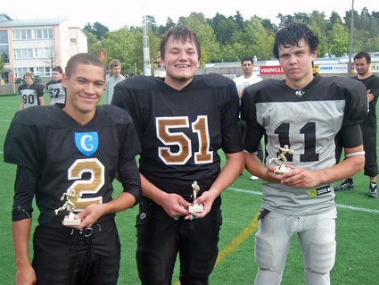 Game MVP Andreas Lindo, Porvoo Butchers Team MVP, Roni Paananen, Porvoo Butchers Team MVP, Verneri Villanen, Jyväskylä Jaguaarit