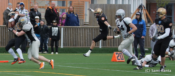 All round -pelaaja Micky Kyei juoksi, heitti, taklasi, potki lentopotkuja, palautti palloja sekä katkaisi syötön. Hän eteni ottelussa yli 300 jaardia juosten, lähinnä linjan vasemmalta reunalta Arttu Tennbergin varmojen blokkien johdosta. Jyväskylän Verneri Villanen teki ottelussa isoja pelejä säkittäen kolmesti Mikko Seppäsen. Ottelussa aktiivisesti puolusti Mikael Paloniemi, joka endin paikalta teki joukkueessaan eniten taklauksia ja pelasi mallikkaasti läpi ottelun keräten 3 soolo- ja 6 avustavaa taklausta.