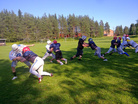 Maitopitäjä Kiuruveden Milky City Farmers aloittaa SAJL:n 3-divisioonassa. Lajiin harrastajilla on tuntumaa muutaman vuoden ajalta. Toimintaa Kiuruveden 10 000 asukkaan taajamassa on ollut jo muutaman vuoden ajan Milky Bowl näytösottelun muodossa. Farmers pelasi kesäkuun puolessa välissä Lieksa Legioonaa vastaan III-divisioonan säännöillä käyttäen Steelersin varusteita. Ottelu päättyi Farmersin voittoon 32-0. Nyt jalkapallon ja jääkiekon harrastajista pääosin koostuva joukkue tulee mukaan SAJL:n toimintaa. Varusteita on saatu Liitolta lainaan ja osallistuminen 3-divisioonaan on tämän vuoden tavoite. Toimintaa laajennetaan myös naapurikuntiin Pyhäjärvelle ja Iisalmelle. |