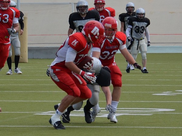 Helsingissä Jaguaarit olivat mukana pelissä ensimmäisen jakson johtaen sitä 0-6 Ville Karhisen juoksumaalilla. Maalin pohjusti Tommi Tyrväisen kiinniotto Verneri Villasen lyhyestä heitosta, jonka Tyrväinen käänsi 60 jaardin mittaiseksi spurtiksi. Helsinkiläisten nimivahva joukkue alkoi ottelun edetessä huomata pelihalujen lisääntyvän ja pallonkantamisen ykköstykki Henri Jussila juoksi pitkän driven jälkeen keskeltä maaliin. Esa Vanhoja lisäsi 2 pistettä omalla lisäpistejuoksullaan. Roosters johti 8-6. Jyväskylän lyhyeksi jääneen lentopotkun palautti valppaana ollut Petrus Raekivi 15 jaardin päähän maalista, josta pelinrakentaja Otso Flinkman juoksi pallon itse maaliin. Lisäpisteet teki heitosta Yannick Chaudhary tilanteeksi 16-6, joka oli taukotilanne. Toisella puoliskolla Roosters meni menojaan. Puolustuslinjassa häärineet Ville Tanskanen, Chris Mulumba, Akseli Kaasalainen sekä Leo Toiminen pitivät aukkonsa ja jahtasivat Verneri Villasta . Otso Flinkman juoksi kaksi maalia ja Yannick Chaudhary viimeisteli myös 12 pistettä. Laitahyökkääjä Otso Parkkonen lisäsi myös 2 pistettä lisäpistepelin muodossa Roostersille. Päivän komeimman maalin pujotteli Esa Vanhoja, joka kiihdytteli ja kurvaili 85 jaardia lentopotkunpalautuksesta aina maaliin asti lopputilanteeksi 50-6. Lisäpisteen juoksi Ilja Kurten. Jyväskylän joukkue pelasi taistellen, mutta ikä- ja kokemusero tulivat esiin ottelun myötä. Jyväskylän puolustuksesta erottui Markus Kärkkäinen, joka otti ottelussa kaksi syötönkatkoa. Ottelun parhain palkittiin Jyväskylän linjasta Aleksi Kriivarinmäki ja Akseli Kaasalainen puolestaan Roostersin linjasta.