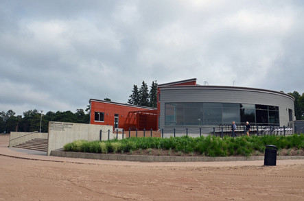 Kolme pelikenttää sijaitsee uimavalvojan tornista oikealla.