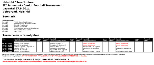 Lisätietoa turnauksesta: Toni Vahla Helsinki 69ers Juniors 040-3022583 toni.vahla (at) teliasonera.com