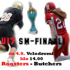 SM-loppuottelussa Helsingin Velodromilla kohtaavat su 4.9. klo 14.00 Roosters ja Butchers. Pronssimitalit ratkotaan Jyväskylässä su 4.9. klo 13.30 Jaguaarien ja Bulldogsin välillä. I-divisioonassa on tulossa jännittävät välierät. Porvoo Butchers oli valmistautunut hyvin välieräotteluun ja voitti selvästi Jyväskylä Jaguaarit 36-12 (16-0). Pelinrakentaja Mikki Nuuttila pelasi hienon ottelun ja onnistui heitoissaan 17/24 yrityksestä 167 jaardin verran. Mukaan mahtui 1 maali ja 2 syötönkatkoa. Andreas Lindo Butchersista jatkoi hyviä otteita ja oli pysäyttämätön maalintekoalueella tehden kolme juoksumaalia. Puolustuksessa Lauri Skaffari oli kovalla taklauspäällä sekä hänelle hyvää taustatukea antoi Tuomas Arrhenius. Toisessa välierässä Helsinki Roostersin Jere Jussila pujotteli entisen kasvattajajoukkueensa puolustajilta karkuun pitkillä siivuilla. Yannick Chaudhary johti peliä maltillisesti ja takoi lopulta piste-eroksi 58-2 (32-0). Sipoolaisten nuori joukkue sai ottelusta arvokasta kokemusta. Bulldogsin ainoat pisteet juoksi lisäpistepelin rähmäyksen palautuksesta Jere Allenius. I-divisioona Seinäjoki Crocodiles otti selvän voiton 0-56 Lappeenranta Rajaritareista Jaska Väreen ja Patrik Puhtimäen urakoidessa maaleja. Kuopio Steelers kiilasi lohkossaan toiseksi voittamalla Kouvola Indiansin 52-6 mm. laitahyökkääjä Markus Ojainvälin sekä keskushyökkääjäpari Pauli Kumpulaisen ja Sami Mäkkelin maaleilla. Välierissä kohtaavat: