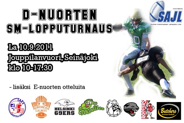 La 10.9. pelataan SM-mitaleista D-nuorten SM-sarjassa Seinäjoen Jouppilanvuorella. Mukana myös E-nuorten otteluita.