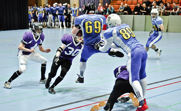 Korkeakoulujenkkifutis aloittaa ensi viikolla sarjansa. Korkeakoulujenkkifutis – mitä se on?Korkeakoulujefusarja starttaa käyntiin ensi viikolla. Sitä ennen on hyvä valaista miten korkeakoulujenkkifutis eroaa tavallisesta. Suurimmat eroavaisuudet korkeakoulujefun ja normaalin jefun välillä huomaa maalikkokin. Korkeakoulusarjaa pelataan sisätiloissa pienemmällä kentällä ja 8vs8 –säännöillä. Pelikentän pituus on 50 jaardia lisättynä 8-10 jaardin pituisilla maalialueilla kenttäpäädyissä. Kentän leveys noin 25 jaardia. Puhutaan siis hyvin pienestä tilasta. Nykymuodossaan korkeakoulujenkkifutis alkoi syksyllä 2009 ja ensimmäinen korkeakoulujen välinen ottelu pelattiin maaliskuussa 2010 Åbo Akademin ja Turun AMK:n välillä. Seuraavana lukuvuonna korkeakoulujenkkifutis laajeni myös Vaasaan ja Jyväskylään ja eri puolilla Suomea pelattiin näytösotteluita. Järjestäytyneintä toiminta oli Turussa, jossa kolme joukkuetta pelasi otteluita satapäisille yleisöille kevättalvella. Pienempi kenttä ja puolustusta rajoittavat säännöt tekevät korkeakoulujenkkifutiksesta vauhdikkaan ja helposti seurattavan lajin. Pelimuodosta on poistettu myös erikoistilanteet, jolloin aloitus- ja lentopotkut tai potkumaalit eivät sekoita kokemattomampia katsojia. Neljännellä yrityksellä hyökkäys voi halutessaan antaa ns. punttiluovutuksen eli luovuttaa pallon vastustavalle joukkueelle, joka aloittaa tuolloin hyökkäysvuoronsa omalta 15 jaardin linjalta. Puolustusta on rajoitettu siten, että ainoastaan puolustuksen laatikosta (linjamiesten väliin jäävä alue) saa blitzata. Ainoastaan yksi tukimies voi blitzata jos hyökkäyksellä on kolme pelaajaa hyökkäyksen laatikossa. Korkeakoulujenkkifutiksen säännöt löytyvät materiaalisalkusta. Tule seuraamaan jännittävää korkeakoulujenkkifutista! Korkeakoulujenkkifutiksen otteluaikataulu 2012:Turun lohko (ottelut Caribia-hallissa): Muu Suomi: Naiset (Caribia-halli) Opiskelijoiden Liikuntaliiton SM-lopputurnaus 30./31.3.2012 Turku |