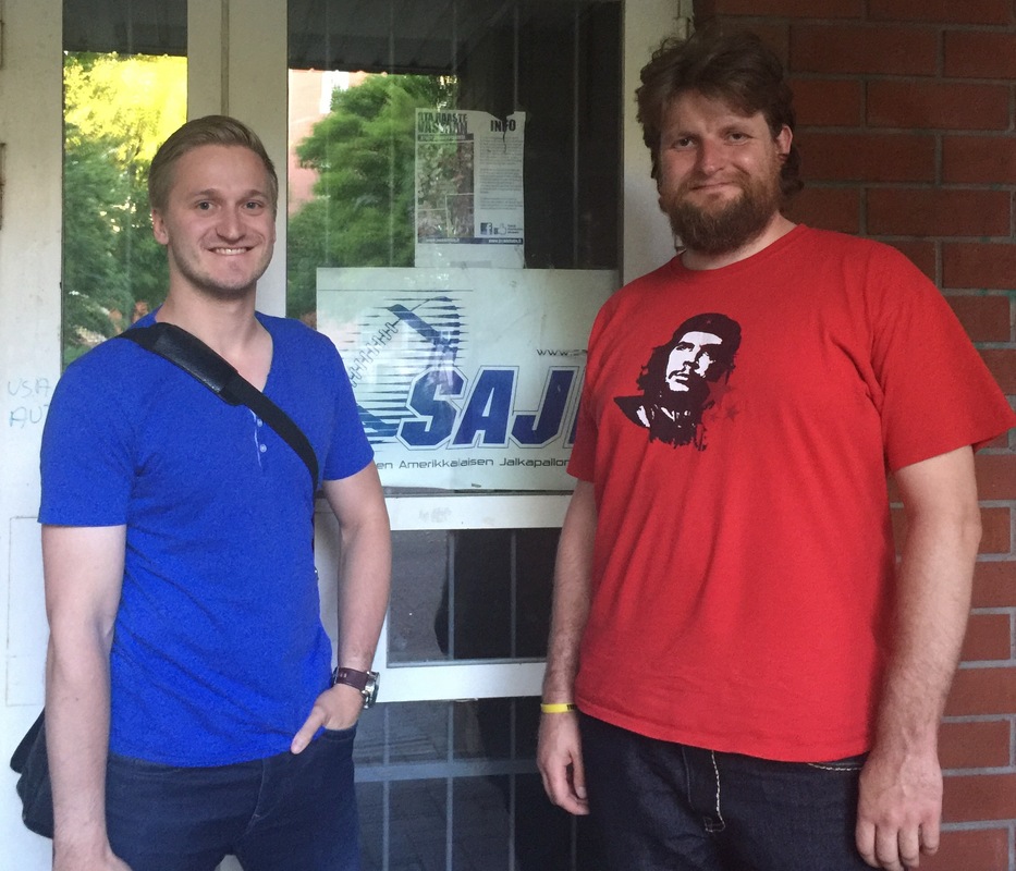 Hallituksen jäsenet Markus Jakobsoo ja Ingmar Ross vierailivat SAJL:n toimistolla Muutaman vuoden hiljaiselon jälkeen Tallinnassa on käynnistynyt Tormin toiminta uudella innolla. Seuran suunnitelmissa on osallistua kaudella 2016 miesten IV-divisioonaan, mutta syksyllekin kelpaisi vielä harjoitusottelu suomalaista joukkuetta vastaan. (7vs7). Toiminnan kehittämiseksi Tormin hallituksenjäsenet Markus Jakobsoo ja Ingmar Ross vierailivat SAJL:n toimistolla kuulemassa suomalaisen jenkkifutiksen tuoreimmat kuulumiset sekä keskustelemassa mahdollisista yhteistyökuvioista tuleville vuosille. Sarjaan osallistumisen lisäksi Tormin suunnitelmissa on mm nuorten toiminnan aloittaminen. |
