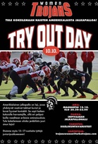 Try out -tilaisuus Aleksis Kiven päivänäTrojans naisten joukkue järjestää kaikille avoimen kokeilutilaisuuden 10. lokakuuta. Trojans etsii myös 13–17 -vuotiaiden tyttöjen joukkueeseen pelaajia. |