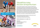 Hanketukea voidaan myöntää urheiluseuroille, jotka järjestävät terveytensä kannalta liian vähän liikkuville työikäisille säännöllistä liikuntatoimintaa. Kunnossa kaiken ikää (KKI) -ohjelman KKI-hanketuki avataan 1.-31.3.2019. KKI-hanketuki on tarkoitettu myönnettäväksi hankkeille, joissa järjestetään aloittelijoille sopivaa liikuntatoimintaa sekä kehittävät keinoja kannustaa terveytensä kannalta liian vähän liikkuvia työikäisiä säännöllisen liikuntaharrastuksen pariin. Hanketukea voidaan myöntää paikallisille toimijoille, jotka järjestävät terveytensä kannalta liian vähän liikkuville työikäisille säännöllistä liikuntatoimintaa. Urheiluseurat voivat hakea tukea matalan kynnyksen liikuntatoiminnan järjestämiseksi. hakuohjeet löytyvät KKI-ohjelman verkkosivuilta. KKI-HANKETUKI KIERROKSELLA 1/2018 Hakemuksia saapui yhteensä 278 kappaletta, joista tukea myönnettiin 116 hankkeelle yhteensä 426 100 €. KKI-HANKETUKI KIERROKSELLA 2/2018 Hakemuksia saapui yhteensä 291 kappaletta, joista tukea myönnettiin 136 hankkeelle yhteensä 229 100€. Liitteet
