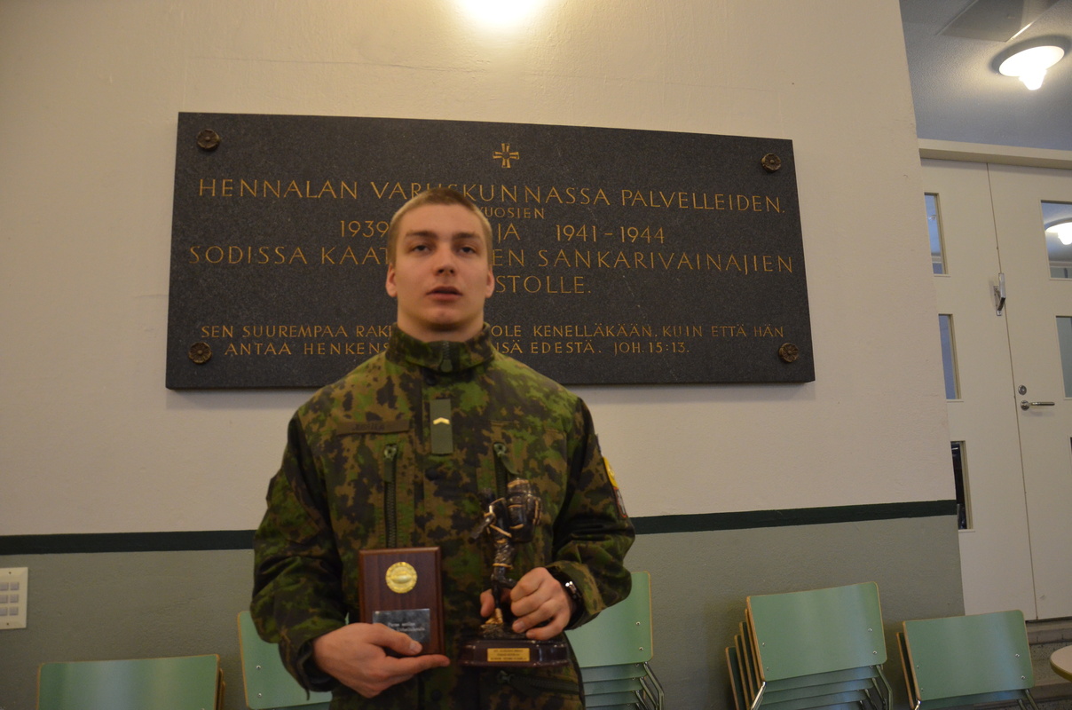 Henri Jussila valittiin Lahden urheilukoulussa 6 kk urheilijoiden parhaaksi sotilaaksi. Urheilukoulun 4/12 saapumiserän kotiuttamisjuhlassa talvisodan päättymispäivänä 13.3. Hennalan varuskunnan sotilaskodissa Henri Jussila jatkoi lajiryhmän perinteitä ja vastaanotti parhaan sotilaan palkinnon. Toinen 6kk varusmiespalvelun läpikäynyt lajiharrastaja Tuomas Nurmi sai saman palkinnon vuonna 2011. |