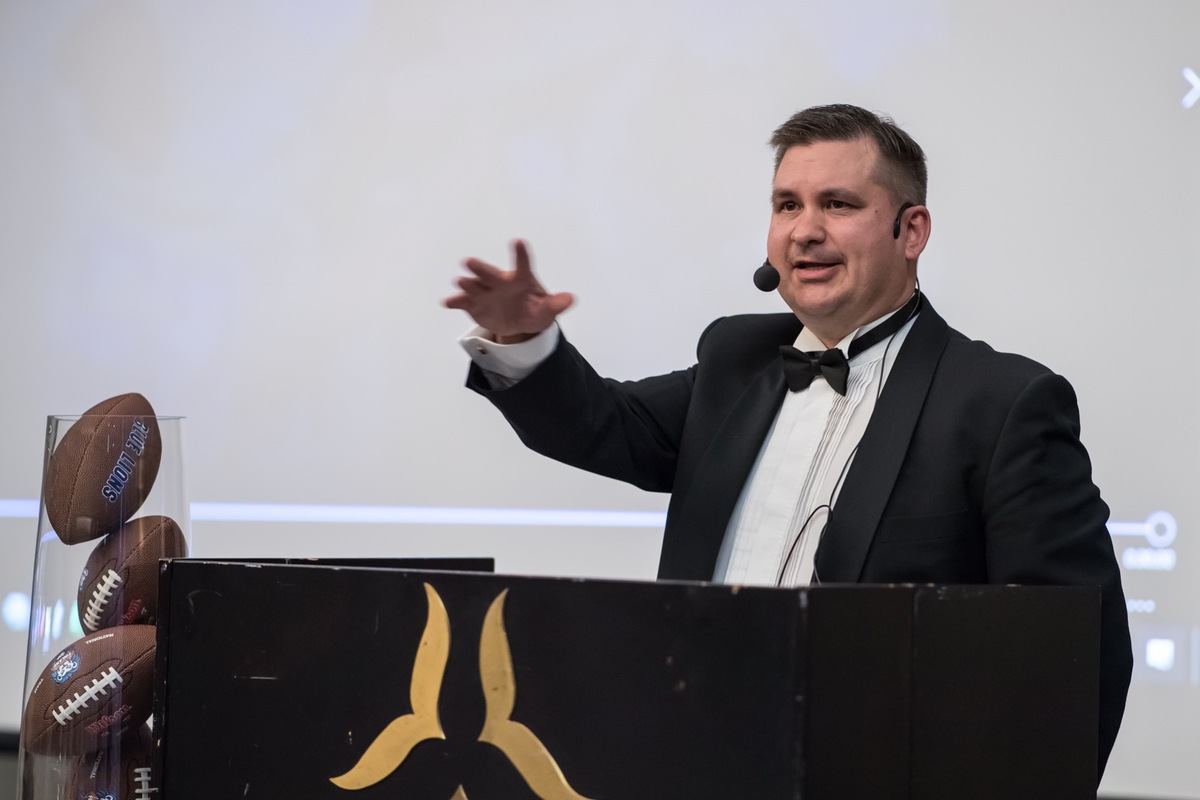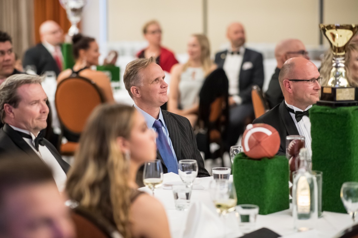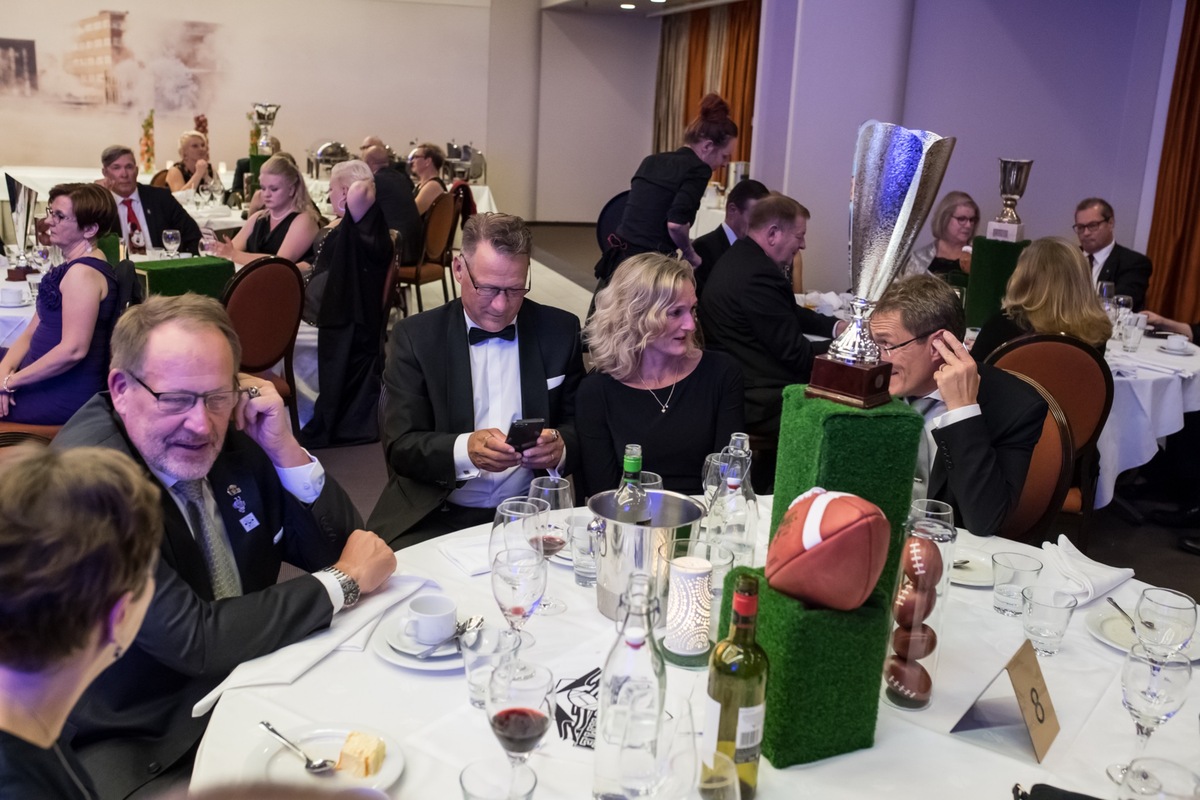 Tampereen Ilves hotellin ballroomissa vietettiin lajin juhlatilaisuutta. Tilaisuudessa jaettiin 83 ansiomerkkiä. Reilut 80 gaalaan osallistujaa pääsi juhlatunnelmaan varsin nopeasti. Ruotsin Liiton edustajat toivat pohjoismaisen tuulahduksen juhlaan. Varsinainen merkkipäivä sijoittuu joulukuulle, sillä Suomen Amerikkalaisen Jalkapallon Liitto ry on perustettu joulukuussa 1979. Ilta alkoi Liiton puheenjohtaja Roope Norosen lyhyellä puheella, jossa ydin viesti on että ns. Liiton muodostavat me kaikki lajin parissa toimivat. Tulevaisuus onkin riippuvainen aktiivisten toimijoiden panoksesta. Ilves hotellin keittiömestari kävi kertomassa juhlaväelle herkullisen menun sisällön, jonka jälkeen pyörähti käyntiin ensimmäinen historiavideo, jossa käytiin läpi vuosien huippuhetket vuosilta 1979-1989. Videoista nähtiin myöhemmin 1990-1999 osuus. 2000-2009 sekä 2010-2019 versiot jäivät teknisten ongelmien takia näkemättä. Katso SAJL huippuhetket täältä. Illan juontaja Jaakko Latva-Pukkila pyysi estradille mielenkiintoisen kaksikon. Vaahteramaljaan valmistautunut juhlaväki sai kuulla tuoreeltaan Kuopio Steelersin päävalmentaja Pekka Utriainen ja takapuolustaja Santeri Kinnunen ajatuksia tulevasta ottelusta. Roostersin päävalmentaja Mikko Koikkalainen sekä pelinrakentaja Miro Kadmiry selvisivät naureskellen Latva-Pukkilan tentistä. Tampere Rocksin perustajajäsen ja pitkäaikainen TeeDee -lehden toimittaja Kari Kallonen lahjoitti juhlavuoden kunniaksi Liitolle sekä kolmelle tamperelaispelaajalle autenttisen ottelujulisteet. Kyseessä oli ensimmäinen amerikkalaisen yliopiston ja eurooppalaisen joukkueen kohtaaminen 2.6. 1984 Tampereen Ratina Stadiumilla. Silloin pelattiin historiallinen William Jewell college vs Suomen maajoukkue ottelu, jossa olivat mukana manselaiset rb Ilkka Luoma, de Tapio Anttila sekä te Esa Kiiskinen. Toinen muistoja herättävä historialahjoitus tehtiin Espoon Viherlaaksossa 1980-luvun alussa vaikuttaneen Green Rock Gorillasin toimesta. Gorillasin delegaatio luovutti seuran taideteoksen muotoon tehdyn 30v. logon SAJL:n puheenjohtaja Roope Noroselle. SAJL ANSIOMERKIT