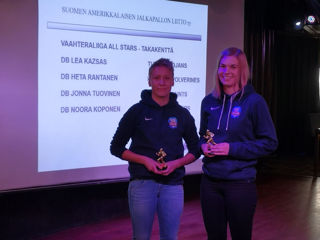 VAAHTERALIIGA ALL STARS - TAKAKENTTÄ DB LEA KAZSAS TURKU TROJANS DB HETA RANTANEN HELSINKI WOLVERINES DB JONNA TUOVINEN TAMPERE SAINTS DB NOORA KOPONEN KUOPIO STEELERS