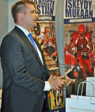 Vaahteraliiga 2013 potkaistiin käyntiin, vaikka sade vähensi yleisön määrää Narinkkatorilla. Vaahteraliiga kick off -päivä alkoi infotilaisuudella Terveystalon luentosalissa. Puheenjohtaja Roope Noronen esitteli perustietoutta SAJL:stä sekä säännöistä. Mukana oli eri seurojen pelaajavahvistuksia sekä valmentajia Vaahteraliigan lisäksi myös I-divisioonasta. Paikalla oli myös Yhdysvaltain suurlähetystön edustajat oman esityksensä kanssa. Suomen Antidoping ry luennoi kuulijoille englanniksi keskeisiä asioita antidopingin suhteen. Sateen vuoksi Narinkkatorille kaavailtu puskukelkan työntökisa jäi väliin. Vaahteraliigan 2013 kynnyksellä valmentajat ja pelaajat kertoivat haastatteluissa tuoreita kuulumisiaan. |