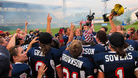 USA vei MM-finaalin Kanadaa vastaan selvin luvuin 64-0 (36-0) USA vie MM-finaalin Kanadaa vastaan selvin luvuin 64-0 (36-0) USA:n #18 Mia Brickhause vie joukkueensa 16-0 johtoon ensimmäisellä neljänneksellä kahdella touchdownillaan. Toisella neljänneksellä USA menee jo 22-0 johtoon pelinrakentaja #15 Sami Grisafen hienolla heitolla. USA:n joukkue lisäsi johtoaan vielä ennen puoliaikaa numeroihin 36-0. Sama sävel jatkuu kolmannella neljänneksellä. Ennen viimeistä neljännestä USA:n johto oli kasvanut jo 50 pisteeseen. USA:n Mia Brickhouse nousee pelin hahmoksi viimeistellen viimeisellä neljänneksellä illan neljännen touchdowninsa ja vie joukkueensa 57-0 johtoon. USA:n voittolukemat lopulta 64-0. Kanadan päävalmentaja Jeff Yausie totesi maailman kärjen olevan vielä kaukana. - Meillä on vielä pitkä matka sinne missä USA on. Opimme kuitenkin paljon turnauksesta. USA:lla on tasapainoinen hyökkäys- ja puolustuspeli, heitä vastaan on todella vaikea pelata. Voimme harjoitella parit USA:n hyökkäys- ja puolustuspelin taktiikat, mutta se ei riitä näin hyvää joukkuetta vastaan. USA:n joukkue lähti MM-taistoon puolentoista päivän harjoittelulla. Lopputulos on maailmanmestaruus. Ottelun parhaaksi pelaajaksi USA:n joukkueesta valittu Jamie Menzyk, joka pelaa hyökkäyslinjaa, arvostaa kovaa valmennusta. - Päävalmentajamme on myös hyökkäyslinjan valmentaja. Hän ei hyväksy meiltä vähempää kuin täydellistä suoritusta. Turnauksen parhaaksi pelaajaksi valittu USA:n pelinrakentaja #15 Sami Grisafe nostaa hattua myös joukkueen taustahenkilöille. - Hyvät asiat tapahtuvat vain kun on hyvä taustatuki ja meidän joukkueella on se. USA:n #18 Mia Brickhause vie joukkueensa 16-0 johtoon ensimmäisellä neljänneksellä kahdella touchdownillaan. Toisella neljänneksellä USA menee jo 22-0 johtoon pelinrakentaja #15 Sami Grisafen hienolla heitolla. USA:n joukkue lisäsi johtoaan vielä ennen puoliaikaa numeroihin 36-0 Sama sävel jatkuu kolmannella neljänneksellä. Ennen viimeistä neljännestä USA:n johto oli kasvanut jo 50 pisteeseen. USA:n Mia Brickhouse nousee pelin hahmoksi viimeistellen viimeisellä neljänneksellä illan neljännen touchdowninsa ja vie joukkueensa 57-0 johtoon. USA:n voittolukemat lopulta 64-0. Kanadan päävalmentaja Jeff Yausie totesi maailman kärjen olevan vielä kaukana. - Meillä on vielä pitkä matka sinne missä USA on. Opimme kuitenkin paljon turnauksesta. USA:lla on tasapainoinen hyökkäys- ja puolustuspeli, heitä vastaan on todella vaikea pelata. Voimme harjoitella parit USA:n hyökkäys- ja puolustuspelin taktiikat, mutta se ei riitä näin hyvää joukkuetta vastaan. USA:n joukkue lähti MM-taistoon puolentoista päivän harjoittelulla. Lopputulos on maailmanmestaruus. Ottelun parhaaksi pelaajaksi USA:n joukkueesta valittu Jamie Menzyk, joka pelaa hyökkäyslinjaa, arvostaa kovaa valmennusta. - Päävalmentajamme on myös hyökkäyslinjan valmentaja. Hän ei hyväksy meiltä vähempää kuin täydellistä suoritusta. Turnauksen parhaaksi pelaajaksi valittu USA:n pelinrakentaja #15 Sami Grisafe nostaa hattua myös joukkueen taustahenkilöille. - Hyvät asiat tapahtuvat vain kun on hyvä taustatuki ja meidän joukkueella on se. |