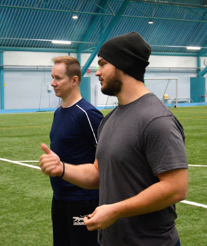 ![Coach Kuvaja antaa taklausdonitsille vauhtia.]()