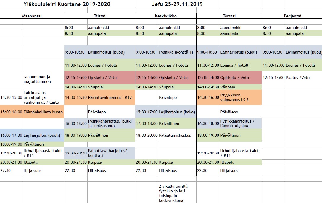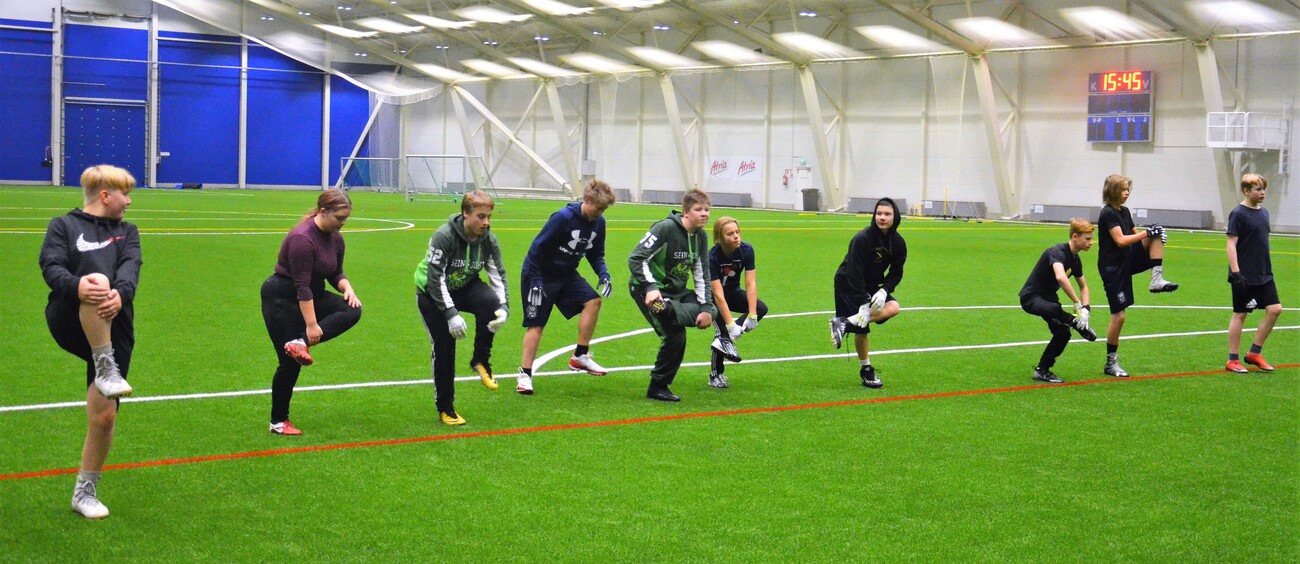 SAJL:n Kuortaneen ja Pajulahden yläkoululeireillä urheilee 36 jenkkifutaria. Monipuolinen harjoittelu ja koulunkäynti nivoutuvat urheilijan hyvään päivään sujuvasti.