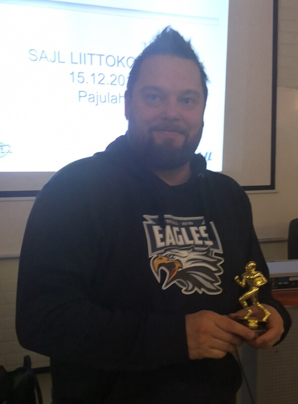 - 2019 SAJL Vuoden nuorisotoimija - Vesa Peltola, Jyväskylä Jaguars 2019 SAJL paras lisenssikasvu (<20v.) - Helsinki East City Giant ja Tampere Saints