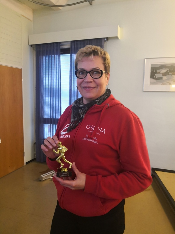 ![Vuoden seura - Kuopio Steelers. Palkinnon vastaanotti seuran puheenjohtaja Jaana Tuppurainen.]()