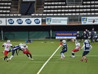 Suomi selkeästi parempi iltaottelussa. Suomi pääsi hyökkäämään ensimmäisenä, mutta menetti pallon heti ensimmäisellä yrityksellä ja Tanska sai pallon itselleen 13 jaardin linjalta. Suomi ja onnistui pitämään kutinsa aina neljänteen potkuyritykseen asti. Pelissä tapahtui kuitenkin potkaisijaan törmääminen ja Tanska sai uudet neljä yritystä. Rikki menneen juoksupelin päätteeksi Tanskan Andreas Lundsgaard peitti irtopallon. Lisäpistepotku epäonnistui. 6-0. Suomen hyökkäys vastasi nopeasti ja Petteri Puntila heitti 58 jaardia pitkän heittomaalin Kalle Kilickesenille. Lisäpistepotkun mennessä ohi oli tilanne 6-6 tilanne ISS Stadionin valotaululla. Peli tasoittui neljänneksen loppua kohden. Suomen puolustus oli rautaa ja pakotti Tanskan kolmen yrityksen jälkeen lentopotkaisemaan jatkuvasti. Pallo pomppi myös Suomelle. Tanskan lentopotkun palauttaja pukkasi pallon ilmaan ja linjamies Samuli Vehkomäki sai pallon ilmasta kiinni ja pelivälinettä lyhyen matkaa. Suomi sai hyvät jaardit Thach Mai Trin screen-pelillä, mutta tuomari näki kuitenkin pelissä virheen. Molempien joukkueiden puolustukset pysyivät hyvin kartalla ja pystyivät torjumaan hyökkäysten etenemisyritykset. Leijonapuolustajat toivat Suomen mukaan peliin riistämällä irtopallon itselleen, kun pelikellossa oli jäljellä 3:35. Kilickesen otti 14 jaardia kopin ja sen jälkeen turkulaistoveri Janne Paavilainen kuljetti palloa eteenpäin uudet kymmenen jaardia. Fullback Paavilainen rynnisti kovaa kuin sarvikuono linjan läpi ja puski itsensä aina jaardin päähän Tanskan maaliviivasta. Joni Kähönen kiitti kunniasta ja vei Suomen johtoon 6-12. Oskari Lappalainen potkaisi puoliajan numeroiksi 12-13. Joni Kähönen aloitti pirteästi oman pallonkantovuoronsa ja hän purjehti parilla kantokerralla lähes puolen kentän verran. Suomen linjassa pelanneet Lahti, Ersan, Olavuo, Ristolainen ja Pulkkinen olivat kovassa blokkivireessä. Janne Paavilainen maalasi uudelleen ja juoksi Suomen kolmannen maalin lähietäisyydeltä. Lisäpistepotku meni ohi. Yleisvaikutelmana Suomen pelaajat tuntuivat piirun verran terävämmin liikkuvia sekä aggressiivisemmin. Puolustusta koordinoinut Tero Virtanen kierrätti pelaajia ja taklaukset jakaantuivat tasaisesti eri pelaajille. 115-kiloinen Juhani Jurvakainen pelasi linjan keskellä väkevää peliä yhdessä Samuli Vehkomäen kanssa. Tanska potkaisi lyhyen lentopotkun ja hyvästä kenttäasemasta Suomi jatkoi hyvää hyökkäämistään ja Robin Drockila teki ensimmäisen maalinsa ja Kalle Kilickesen 2 lisäpistettä. Suomi johdossa 6-35. Magnus Nielsen otti syötönkatkon ilmaan pompanneesta pallosta, mutta Suomen puolustus oli tiukkana. Tanskan hurry up -hyökkäys aiheutti puolustukselleen harmaita hiuksia, sillä osa hyökkäysvuoroista kesti noin 30 sekuntia. Loppuaika ottelusta sujui vaihtorulianssia pyörittäessä ja ilman lisäpisteitä.
