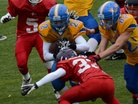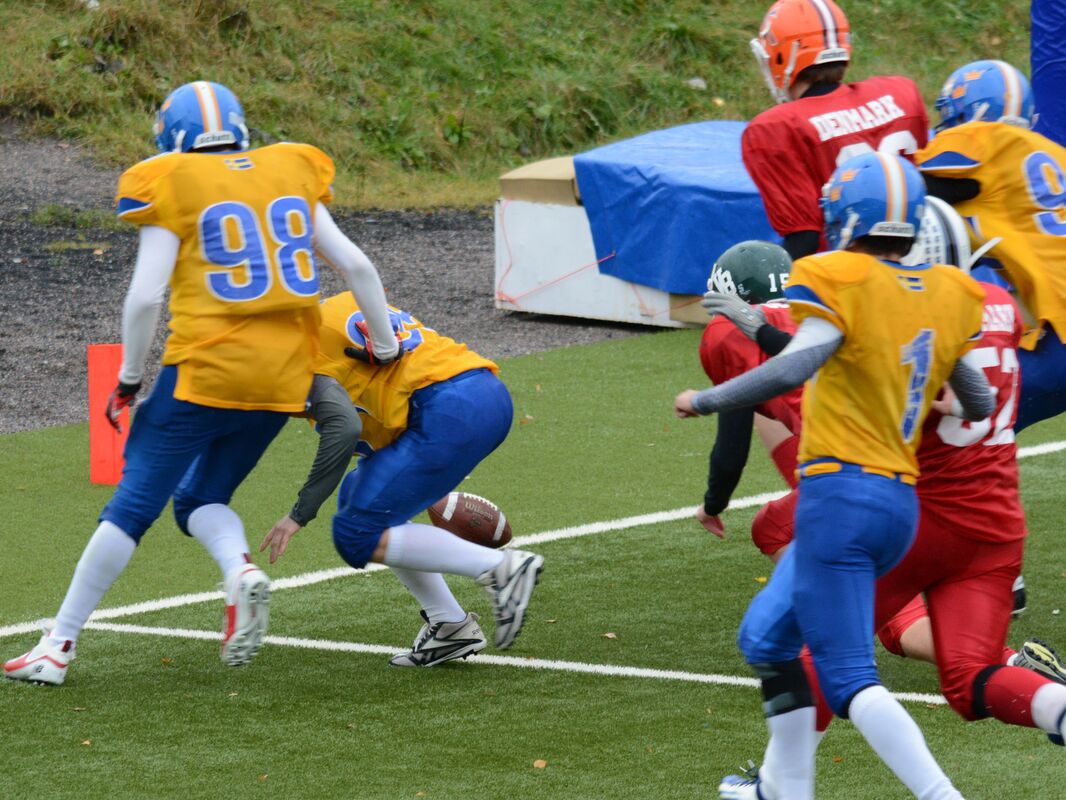 Ruotsi voitti puolustusvoittoisen ottelun, jossa ei tehty yhtään hyökkäyspistettä. Tasainen kamppailu ratkesi lopulta Ruotsin linjapelaajan Hugo Dyrendahlin katkaisemaan syöttöön aivan Tanskan maalialueen tuntumassa. Toinen pistesuoritus tuli safetyn muodossa, kun pallo lipsahti pitkän aloitussyötön jälkitunnelmissa maalialueen päätyviivan yli. Ruotsi voitti ottelun 8-0. Team MVP Tanska DL Fredrik Stidsen |