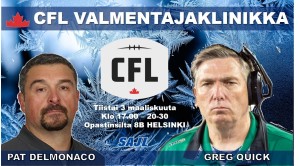 teksti: Tuomas Heikkinen, miesten maajoukkueen päävalmentaja Luennoitsijat: Greg Quick omaa lähes 40 vuoden kokemuksen valmentamisesta CFL:ssä ja USA:n yliopistosarjoissa. Quick on toiminut puolustustuksen koordinaattorina/tukimiesvalmentajana kolmessa CFL joukkueessa (Toronto Argonauts, Saskatchewan Roughriders, Montreal Alouettes) sekä NCAA:ssa mm. 1979-1983 Emporia State DC/OL/DB, 1985 Heidelberg OC/OL, 1986 New Mexico State LB, 1987 Edinboro DC/DB, 1989-1993 Chicago, 1994-1998 St. Norbert, 1999-2002 San Diego OC/OL, 2003-2008 Concord. Pat DelMonaco nimettiin kaudelle 2020 hyökkäyksen koordinaattoriksi Calgary Stampedersiin. Hän valmentaa joukkueessa seitsemättä kauttaan. DelMonaco valmensi aiemmin Winnipeg Blue Bombersin hyökkäyslinjaa neljän kauden ajan. DelMonacolla on myös kokemusta USA:n yliopisto sarjoista 2005-2009 – Rensselaer Polytechnic Institute (NCAA) – Offensive Coordinator/Offensive Line Coach, 2003-04 – Rensselaer Polytechnic Institute (NCAA) – Offensive Line Coach, 2002 – Hudson Valley Community College, Quarterbacks Coach, 2001 – University of Illinois (NCAA) – Graduate Assistant, 2000-01 – Hudson Valley Community College – Offensive Line Coach