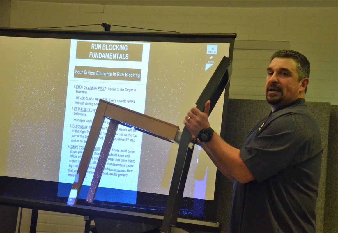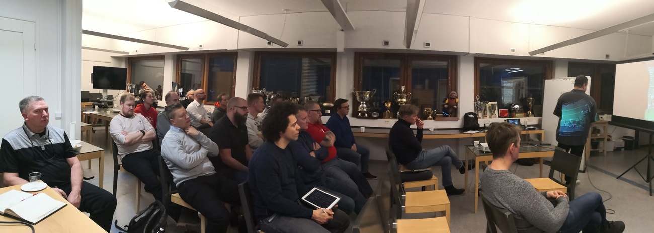 Reilut parikymmentä valmentajaa kokoontui kuuntelemaan kokeneiden CFL: n valmentajien luentoja SAJL toimiston luentotilaan. Greg Quickin ja Pat DelMonacon klinikka oli todella hyvä. Esitellyt asiat ja ajatukset olivat sellaisia, että niistä varmasti sai jokainen paljon mukaansa kokemuksesta tms. riippumatta. Kaikki esitetty ja avattu harjoitteluun liittyvä tekeminen oli sellaista, mitä voidaan toteuttaa meidänkin olosuhteissamme ilman kovaa kontaktia tai loukkaantumisen pelkoa. Coach Quick avasi hienosti sitä, millaiset ominaisuudet hänen kokemuksensa mukaan ovat tärkeitä ja hupputasolla yhteneviä urheilussa yleensä, jenkkifutiksen pelaamisessa, puolustamisessa ja erityisesti endin pass rushissa. Kehon toiminnallisuuden, nivelkulmien, tukilihaksiston, liikkuvuuden sekä räjähtävän triple extensionin merkitys korostui selkeästi. Valmennuksellisesta näkökulmasta korostui vauhdissa valmentamisen idea, perustehtävien ja tekniikoiden pitää olla niin selkeästi opetettu että niihin voidaan kovatempoisessa harjoituksessa kiinnittää suoritusten välissä huomiota yhdellä tai kahdella sanalla. DE-drilliesimerkit detaljisine huomion kohteineen olivat hyviä esimerkkejä tästä, ja samalla antoivat aineksia DL-valmennukseen yleisesti. Quickin osuuksien ilme oli ehkä enemmän vuosikymmenien aikana kerääntyneen ja tiivistyneen viisauden jakamista, siitä miten ihminen yleensä ja nykyinen nuori pelaaja erityisesti kokee pelitilanteen, ja miten se voidaan ottaa huomioon valmennuksessa. Samalla tarkasti drillattujen fyysisten kykyjen merkitys hyvien pelisuoritusten mahdollistajana korostui. Matalana pysyvä atleettinen liikkuvuudeltaan hyvä pelaaja pärjää. Coach DelMonaco paneutui pääosan ajasta hyökkäyksen linjaan ja erityisesti inside- ja outside zone-juoksublokkaamisen perusteisiin. Hyökkäyslinjaklinikat ovat lähes aina teknisiin yksityiskohtiin paneutuvia, niin myös nyt. Sinällään selkeäsääntöinen ja yksinkertainen blokkisäännöstö vaatii hyvää tunnistamista ja reagointia. Voitot ja tappiot linjapelissä perustuvat pieniin marginaaleihin jolloin jokaisella voimakulmalla, askeleen suunnalla ja pituudella , tähtäyspisteellä, käden asennolla ja kontaktipisteellä jne on iso merkitys. Patin toinen osio keskittyi pääsosin heittosuojaukseen samalla intensiteetillä ja tarkkuudella ja lopuksi asiat yhdistyivät lyhyeen heittopelien kokonaisanalysointiin, puolustuksen lukemiseen ja sen mukaan pelaamiseen. Vaatimustaso pelaajille CFL-tasolla on kova. Vastustajasta tehdyt huomiot pitää pelitilanteessa tunnistaa ja niiden mukaan pitää pystyä systeemin suunnassa toimimaan. Kaikkiaan ilta oli erittäin antoisa, ja tällaisiin toivoisi pääsevänsä osallistumaan useamminkin. Aina ammattilaisia kuunnellessa oppii ainakin jotain, tällä kertaa sai paljonkin ajateltavaa mukaansa.