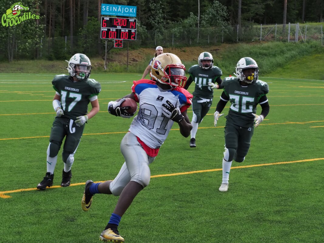 SAJL:n sarjoista pisimmällä on U13 SM-sarja. Wasa Royals ja Helsinki Wolverines ovat voittaneet kaikki kolme otteluaan. Finaaliin on kuitenkin useita muitakin kärkkyjiä U13 SM-sarjaa on pelattu kolme kierrosta. Tosin esimerkiksi viime vuoden mestarilla East City Giantsilla on takanaa vain yksi ottelu. Sarjassa puhtalla pelillä jatkavia joukkueita on kaksi. Wasa Royals ja Helsinki Wolverines. Wasa Royals menestyksen takana on neljättä vuotta ryhmää valmentanut Ilkka Virkkala. Virkkala on hyvä esimerkki kuinka amerikkalaisen jalkapallon valmentajaksi voi tulla hyvin ns. lajiboxin ulkopuolelta. Pojan harrastuksen myötä valmentaminen alkoi kiinnostaa. - Tärkeintä on että nuoret pääsevät urheilemaan. Meidän 14 pelaajan ryhmä on hyvin hitsaantunut yhteen neljän vuoden aikana ja siinä on hyvä henki. Suurin osa pelaajista on 13-vuotiaita. Joukkueessa ei ole yhtään Y-pelaajaa. Oma valmennus perustuu 11vs11 pelimuodon näkökulmaan ja minulla ei ole ehkä mitään lajia harrastaneen valmentajan rajoitteita. Vähitellen yleisvalmentamisesta ollaan päästy myös yksityiskohtien hiomiseen. Siinä on ollut apuna linjavalmentaja Oskari Korkeamäki Suomessa on pelannut kautta aikakirjain mahtavia veljessarjoja amerikkalaisen jalkapallon parissa kuten Evwarayn, Heinosen ja Lehtosen veljestriot. Uusin veljeskunta on nimeltään Uusin veljeskunta on Klalifan veljekset Vaasasta. Raul Khalifa on ollut takomassa ison läjän maaleja yhdessä Veeti Leppäsen, Antonio Garcia-Carmen sekä Hugo Hevonkosken kanssa. - East City Giants tulee viikonloppuna Vaasaan ja se tulee olemaan yksi tason mittaus. Tuntuu vähän siltä, että pääkaupunkiseudun joukkueet ovat kovatasoisia. Voittoa ottelusta lähdetään hakemaan, mutta jos tulee häviö niin ei se haittaa Seinäjoki Crocodiles järjesti ensimmäisen ottelunsa Junior Botnia Bowlin. Tiukka kamppailu kääntyi vaasalaisten voitoksi 26-36 (6-14). Royalsin puolustus sai pysäytettyä Crocodilesin hyökkäyksen. Ottelussa palkittiin parhaina pelaajina Royalsin hyökkäyksestä Raul Khalifa ja puolustuksesta Taisto Koivisto. Crocodilesin parhaimmistoa olivat hyökkäyksessä Eero Marttila ja puolustuksessa Sisu Lahti. Kolme vuotta U13 sarjaa hallinnut East City Giants kohtasi voittajansa, kun Helsinki Wolverines käänsi ottelun kulun itselleen. Wolverinesin päävalmentaja Veikko Viuha näki, että tiukassa ja kovatasoisessa ottelussa Wolverinesia auttoi kahden aiemman ottelun kokemus. - Meillä pysyi ottelussa myös pää kylmänä ja keskityttyimme omaan peliin. Kun pääsimme tasoihin ja ohi toisella pelipuoliskolla peli rentoutui. Saimme Giantsin hyökkäysakselin Vahla-Eloranta kuriin ja puolustaminen helpottui. Se oli hyvätasoinen ottelu kaiken.kaikkiaan. Yksi ottelun ratkaisijoista oli Helsinki Wolverinesin pelinrakentaja Sifiso Salama. Juoksemaan ja heittämään tasapainoisesti kykenevä urheilijanuorukainen otti myös puolustuksessa syötönkatkon. Salama on löytänyt muiden palloilulajien jälkeen jenkkifutiksen ja haluaa kehittyä siinä mahdollisimman paljon. - Joukkueen ilme on monilajiharrastajapohjainen. Jääkiekkopelaajia ei talvella treeneissä näy, mutta keväällä he palaajavat joukkueen vahvuuteen. Tänä vuonna meillä on hyvä combo uusia ja kokeneita pelaajia. Rookie-pelaajat ovat kehittyneet ilahduttavasti ja heidät voi laittaa hyvin kehiin neljänteen otteluun. U13 sarja on tänä vuonna pitkä ja kovatasoinen ja jos mielii finaaliin, niin runkosarjassa on sijoituttava ykkös- tai kakkospaikalle. Meille se on tavoite, mutta tärkeintä on että pelaajilla on hauskaa ja harrastuksesta nautitaan