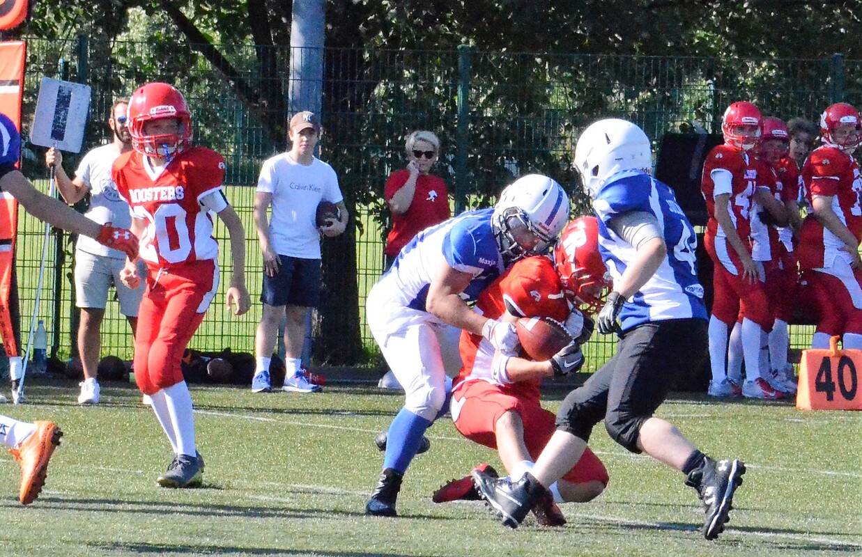 11vs11 SM-sarjassa pelataan kaksinkertainen neljän joukkueen sarja. Sarjan puolessa välissä helsinkiläinen East City Giants jatkaa puhtaalla pelillä. Himoittua kakkostilaa, jonka kautta pääsee suoraan finaaliin, tavoittelevat Seinäjoki Crocodiles ja Jyväskylä Jaguars. Näiden joukkueiden keskinäinen kamppailu päättyi lopulta 32-18 jyväskyläläisten voittoon. East City Giantsissa on pitkään yhdessä pelanneita junioreita. Määrällisesti jopa 32 pelaajaa ottelupäivänä pukeva Giantsin U15 joukkue on tiukan talviharjoittelun lopputulos. Peruskuntokaudella joukkue harjoittelee voimailua painonnostaja Anni Vuohijoen opastamana kahdesti viikossa ja tähän lisätään pikajuoksu-, paini- ja liikkuvuustreeni sekä yksi lajiharjoitus, niin harjoitusviikko näyttää varsin mallikkaalta. Joukkueen ydin on hyökkäyslinja, jonka muodostavat Alexander Huhtaniemi, Juuso Linja, Matias Minkkinen, Aaron Pakarinen ja Gabriel Santos. Santos on myös pelannut keskimmäistä tukimiestä ja hän onnistui ottamaan syötönkatkon viime ottelussa. Hyökkäyksen kapellimestarina toimii Nooa Kurki, joka pystyy esittämään varsin tasapainoista pelinjohtamista. Juoksuvastuuta ja maalintekoa ovat jakaneet keskushyökkääjät Eero Vitikainen, Vlad Hosko ja Anttoni Norta. Tehokkain laitahyökkääjä on Espoo Devilsistä siirtynyt Daniel Rubinstein. Puolustuksessa tukimiehet Konsta Parkkinen ja Oliver Kunttu ovat paukuttaneet eniten taklauksia.