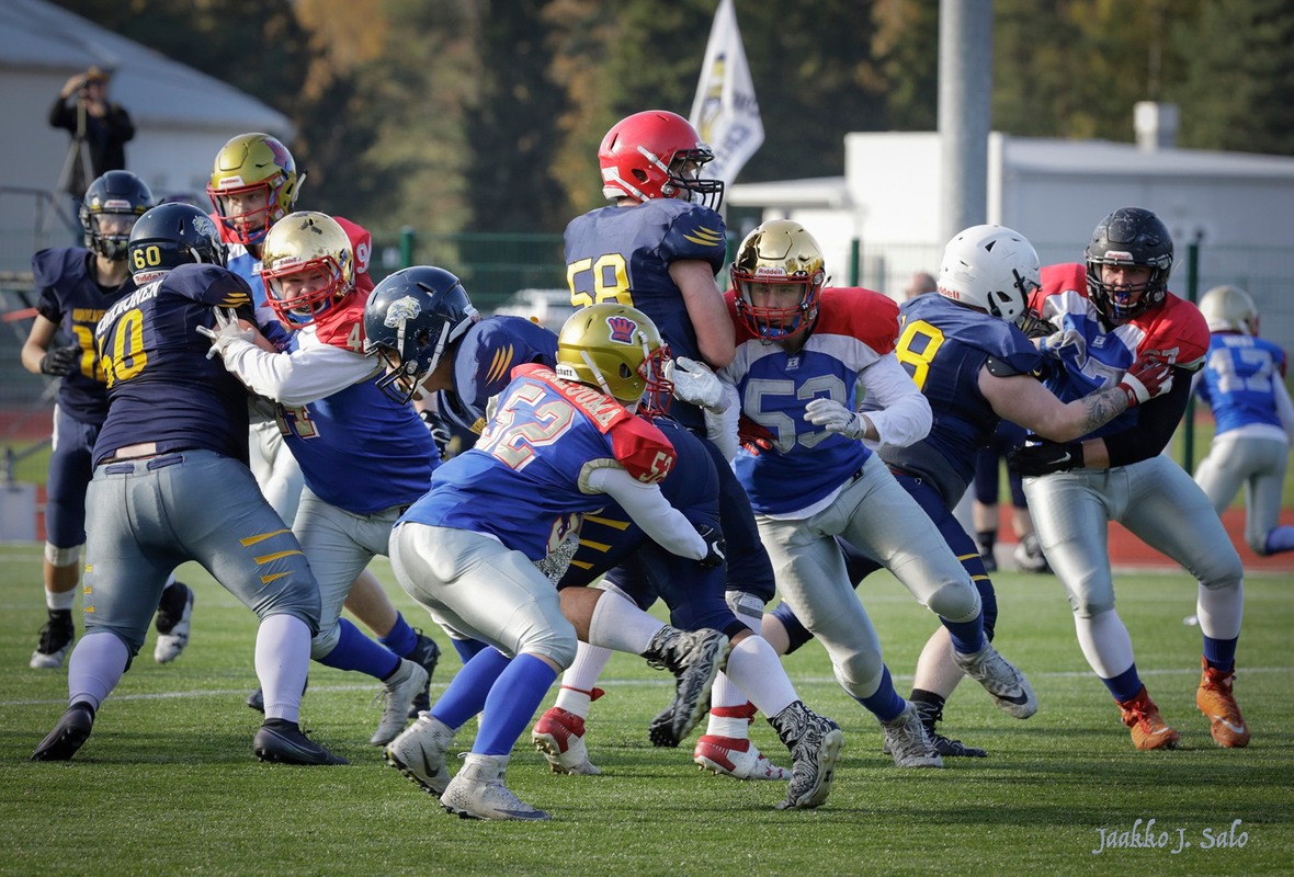 SAJL:n vanhimmassa nuorisoikäluokassa pelattiin lauantaina kultaisista mitaleista. Viime kauden finaalin toisinnossa voittaja vaihtui ja kirkkaimmat mitalit jäivät Vaasaan. Royals – Wolverines peli päättyi kotijoukkueen 26-14 (14-0) voittoon. Wasa Royals voitti U20-nuorten SM-finaalin suvereenin esityksen tuloksena. Vaahteraliigassakin vahvoja otteita esittänyt Nico Barrow juoksi kaikki neljä joukkueensa touchdownia ja pelasi läpi ottelun vahvasti molemmin puolin palloa. Mestarijoukkueen puolustuksen lukkona taklasi Axel Arvila kymmenellä taklauksellaan. Molemmat joukkueet lähtivät loppuotteluun loukkaantumisten verottamilla kokoonpanoilla. Vaahteraliigapelaajista Royalsin Lamin Latikka sekä Wolverinesin Willy Lindfors ja Arttu Ketonen eivät olleet pelikuntoisia kauden viimeisessä ottelussa. Pisteidentekijät