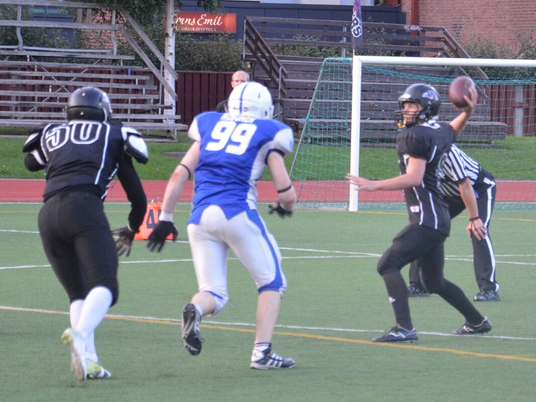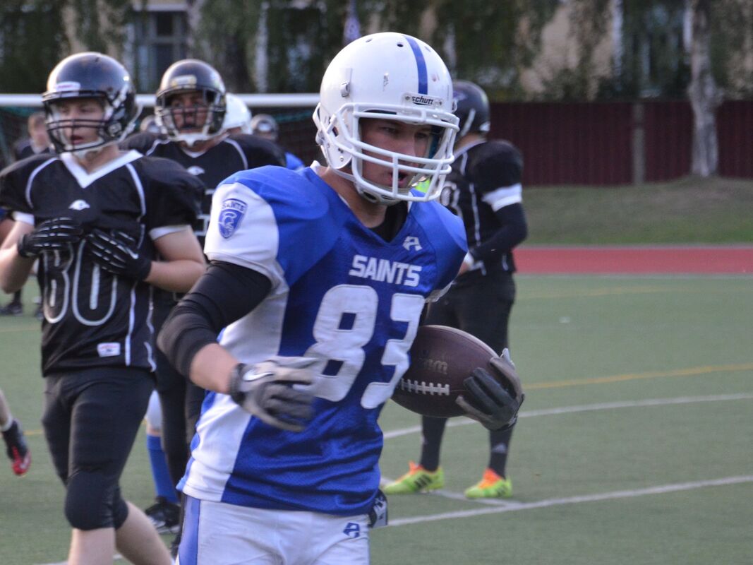 Tampere Saintsin joukkue oli keski-iältään noin 1-2 vuotta vanhempi ja joukkueen runko menee sarjasta yli-ikäiseksi. Kovaa pelannut joukkue oli valmis antamaan kaikkensa viimeisessä junioripelissään ja se näkyi kentällä. Helsinki 69ersin 25 pelaajan ryhmästä menee yli-ikäseksi vain 6 pelaajaa. Oskar Drockila onnistui ottelussa erinomaisesti ja epävirallinen tilasto kirjautti hänelle 20/32 onnistunutta heittoa, 221 heittojaardia, 4 heittomaalia ja 1 syötönkatko. Pisteet: Helsinki 69ers: Timofei Telov 14p Alexander Wasiljeff 14p Oskar Drockila 8p Robin Drockikla 6p Tampere Saints: Jaakko Jylhä 26p Kimmo Jokinen 14p Jaakko Koivunen 8p Thomas Salenius 4p Team MVP Timofei Telov, Helsinki 69ers Team MVP Jaakko Koivunen, Tampere Saints Game MVP Jaakko Jylhä, Tampere Saints Harri Koivusen kuvia ottelusta.