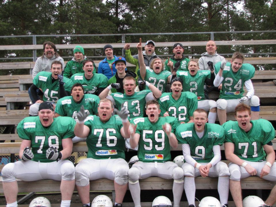 Runkosarjan viimeinen ottelu sai poikkeuksellisesti SM-pronssiottelun arvon. Jyväskylä johti tasaista ottelua puoliajalla 0-6 juoksumaalilla. Ottelun toisella puoliskolla Jaguaarien pelinrakentaja Verneri Villanen heitti pitkän syötön aina maaliin asti nostaen Jaguaarien johdon 0-12 numeroihin. Crocodilesin hyökkäyspelaajat Juhani Koivumäki ja Vili Rajamäki toivat joukkueensa 7-12 tilanteeseen. Villanen onnistui uudelleen heittämään maalin ja Jaguaarit johtivat ottelua kolmannen jakson lopussa 7-18. Lue ottelusta enemmän Crocodilesin sivuilta. |