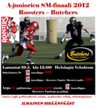 La 19.5. klo 12.00 potkaistaan huikea A-nuorten finaali käyntiin Velodromilla Helsinki Roostersin ja Porvoo Butchersin välillä. Seinäjoki Crocodiles sai pronssia. Joukkueiden runkosarjan kohtaamisessa Porvoo johti 0-14 puoliajalla, mutta Roosters kiri lopulta ohi voittaen ottelun 39-28 Henri Jussilan wildcat-hyökkäämisellä. Finaalissa joukkueiden kohtaaminen tulee olemaan kuitenkin erinäköinen jo sen vuoksi, että Roostersilla on käytettävissään molemmat pelinrakentajansa Otso Flinkman ja Nicholas Sandhu. Odotettavissa on kovatasoinen ottelu, jossa panosta riittää varmasti. Joukkueiden kokoonpanot ovat suunnilleen samat kuin alkukaudesta. Roostersin A-nuorista linjapuolustaja Antti Pirilä on loukkaantunut ja hänet korvaa paluun tehnyt Chris Mulumba. Helsinkiläisjoukkue pukee finaaliin yli 30 pelaajaa. Butchersin miehistö on kärsinyt alkukauden pienestä rosteristaan. Paluun tekee ainakin U17 maajoukkueen linjamies Eetu Rusanen. Porvoon rosterin koko on parikymmentä pelaajaa. Joukkueiden pelaajaaines on tasavahvaa. Molemmilla on ikäluokkansa parhaat pallonkantajat; helsinkiläisillä paljon suitsutettu Henri Jussila ja Butchersilla aina vaarallinen Micky Kyei. Joukkueet ovat kykeneviä myös näyttävään heittopelaamiseen. Tässä avaimeksi tulee muodostumaan heittoblokkaamisen varmuus. Porvoon Mikko Seppänen hakee heittopeleissä usein pitkiä ratkaisuja kerralla maaliin, kun taas Roosters luottaa enemmän keskipitkään systemaattisuuteen heitoissaan. Kuntopohja ratkaisee myös. Kumpi joukkueista jaksaa pelata yritykset loppuun; joukkuepuolustaa ja kirmata Velodromin ikinurmella viimeiseen vihellykseen asti. Onko Porvoon salainen finaaliase salibandyn nuorten maajoukkueessakin esiintynyt Deina Imjack? Tasaisissa otteluissa myös onnistuneet potkupelit voivat riittää mestaruuteen asti. Roostersin Onni Juvonen ja Butchersin Phung Ngyen ovat rutinoituja lisäpistepotkaisijoita. Löytyy jommaltakummalta varmuutta pidempiin pistepotkuihin. Finaalissa erityispaino on valmentajien onnistumisessa. Roostersin hyökkäystä koordinoi Atte Kniivilä ja puolustusta Juha Hakala. Porvoon ruorissa puolestaan ovat hyökkäyksessä Pekka Piminäinen ja puolustuksessa Tero Kontiainen. Velodromin ympäristössä tapahtuu lauantaina muutenkin, kun klo 13.00 Helsinki Wolverines avaa kautensa Velodromin harjoituskentällä Tampere Saintsia vastaan. Klo 16.00 I-divisioonan avausottelussa Velodromilla ovat sarjanousijat East City Giants ja Sipoo Bulldogs taistelevat pisteistä. Seinäjoki Crocodilesille SM-pronssia