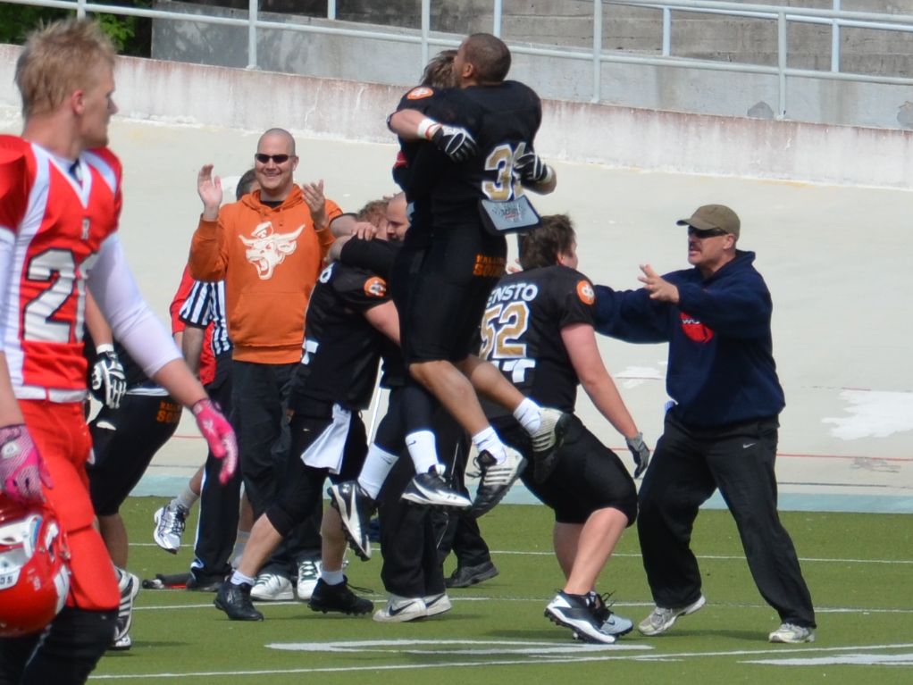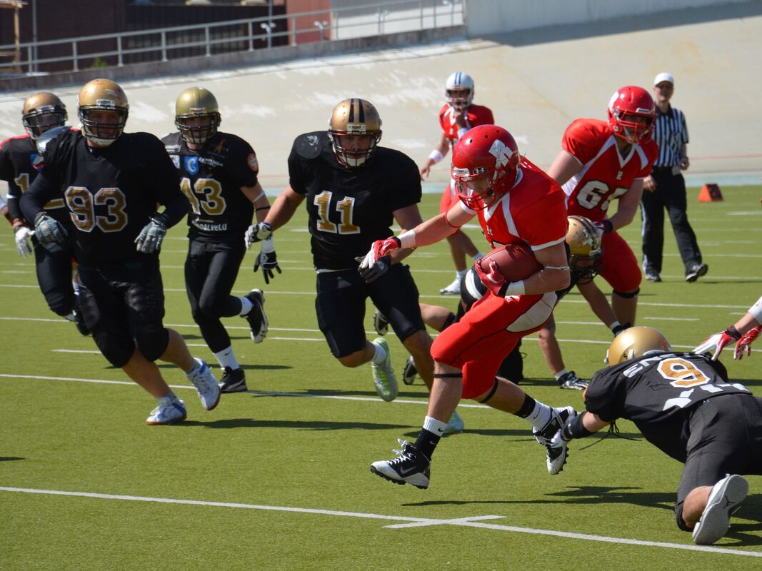 Vuoden 2012 A-nuorten mestari on Porvoo Butchers, joka voitti puolustusvoittoisen väännön Helsinki Roostersia vastaan 14-28 (7-14). Ensimmäinen maali nähtiin heti Porvoon ensimmäisen hyökkäysvuoron päätteeksi, kun Roostersin takamies Ville Roitto katkaisi syötön. Hyvästä kenttäasemasta pelinrakentaja Otso Flinkman heitti 5 jaardin heiton Yannick Chaudharylle ja Onni Juvonen potkaisi helsinkiläisten johdoksi 7-0. Butchers vastasi heti seuraavassa käänteessä ja Micky Kyei juoksi 48 jaardin maalin. Phung Ngyen tasoitti potkullaan tilanteeksi 7-7. Tämän jälkeen ottelun ensimmäinen puolisko oli sekavaa hyökkäilyä puolin ja toisin. Ottelussa ei nähty hyökkäyshienouksia vaan maalit tulivat hyökkäysten virheistä.Molempien puolustukset olivat niskan päällä ja ainoat lisäpisteet saatiin aivan toisen neljänneksen lopussa, kun Mikko Seppänen löysi 37 jaardin heittopelillä Niko Roikon. Ngyen potkaisi taukojohdoksi 7-14. Toisella ottelujaksolla kävi selväksi, että Roostersin heittopelaaminen ei onnistunut Butchersin tarkasti pelannutta takakenttää ja tukimiehistöä vastaan. Butchers keräsi ottelussa peräti viisi syötökatkoa, joista kaksi nappasi safetyn paikalla pelannut Niko Roiko. Kolmannella neljänneksellä ottelun hahmona häärinyt Niko Pennanen siirsi porvoolaiset 7-21 johtoon linjaläpipelillä. Roostersilla oli vielä hetkensä, kun Henri Jussila pääsi pistol-hyökkäysmuodostelmasta kaventamaan 21-14 neljän jaardin lähikiinniotolla. Onni Juvonen potkaisi lisäpisteen. Tämän jälkeen Roostersin puolustus onnistui riistämään irtopallon itselleen ja momentum oli hetken heillä. Kuitenkin kivikovaksi esteeksi muodostunut Butchers-takakenttä nappasi välittömästi pallon syötönkatkon muodossa itselleen. Tämän jälkeen Phung Ngyen jäi vapaaksi heittopelissä ja teki kolmannen jakson päätösminuuteilla 64 jaardia pitkän heittopelin. Butchers johti 14-28. Neljäs jakso oli pisteetön ja näin Butchers uusi mestaruutensa. Pelaajamateriaaliltaan kapeampi Butchers oli kuitenkin loppujen lopuksi voittamiseen rutinoidumpi. Porvoon ikäkausijoukkueet eivät ole hävinneet finaaleita vuosikausiin. Roosters oli hienoinen ennakkosuosikki keskinäisen otteluvoiton johdosta, mutta heittotaktiikkaan perustustunut hyökkäys ei onnistunut tällä kertaa. Myös tärkeä tavoite hyvin liikkuneen pelinrakentaja Mikko Seppäsen boxissa pitämisen suhteen epäonnistui useimmiten.