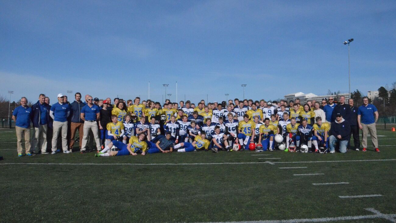 Suomen ja Ruotsin U15 kehitysjoukkueet leireilivät ja pelasivat yhdessä Velodromilla. Suomi oli scrimmagessa asteen edellä. Maajoukkueiden yhteinen leiritys oli ensimmäinen ikäkausimaajoukkueiden historiassa. Joukkueiden päävalmentajat Sebastian Brinkenfeldt ja Heikki Halttunen sopivat asiasta syksyllä 2014 Pohjoismaisessa nuorisotapaamisessa. Harjoitusten sisältö ja säännöt scrimmagea varten sovittiin yhdessä. Pelipaikkavalmentajat valmensivat osuutensa yhdessä ja 7vs7, inside run sekä pass pro -osuuksissa saatiin aikaan mahtavia sessioita, kun molemmilta joukkueilta löytyi tuoreita jalkoja ja kovaa yrittämistä. Leiripäivän aikana joukkueet lounastivat yhdessä ja lopulta koettelivat voimiaan scrimmage-pelissä. Suomella oli asettaa kolme tasavahvaa pelinrakentajaa pelikentälle. Heistä Antto Toivio toimitti juoksemalla itse pelivälineen 6 pisteen arvoisesti maalialueelle. Hienon heittohyökkäysvuoron esitti August Wahlstein, joka toi ryhmänsä Kristian Ristilän varmoilla kiinniotoilla läpi kentän. Jesper Korkalainen puolestaan pelasi varmasti ja näytti urheilullisuuttaan tekemällä muutaman nopean irtioton jaloillaan.