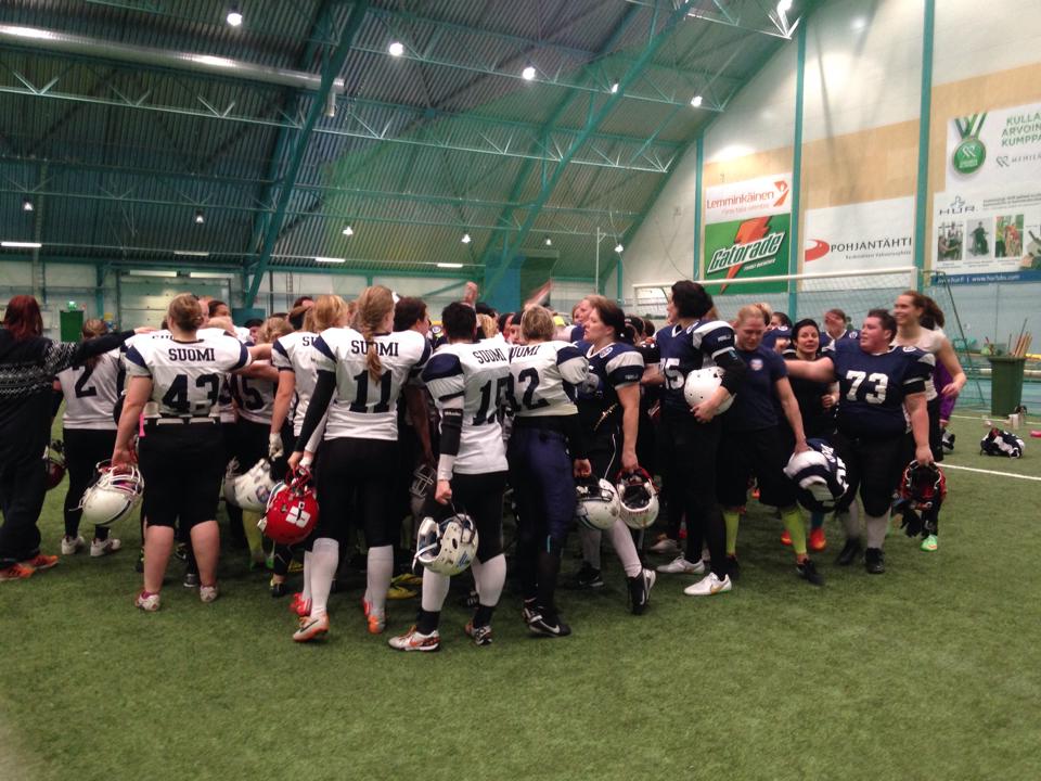 Naisten maajoukkue leireili Pajulahdessa 11.-12.4. Paikkaa jatkoleiritykseen tavoitteli 80 naista. Leirin ohjelma oli erittäin tiivis. Lauantai sisälsi kahdet lajiharjoitukset, kolme videopalaveria sekä Jesse Talikan luennon liittyen optimaaliseen valmistautumiseen ennen arvokilpailuja. Sunnuntaina oli vielä kahdet lajiharjoitukset. "Kuten aina valinta oli vaikea. Pelaajien urheilullisuus on noussut ja tekee valinnan entistä vaikeammaksi. Kaikki leirillä olleet olivat erittäin tärkeitä pelaajia joukkueelle. Kokonaisuus mahdollisti hyvän temmon ja kehittävät harjoitukset. Toivon että kaikki saivat leiristä positiviisia asioita mukaan jenkkifudismatkalleen ja motivaatiota harjoituksiin ja alkavaan kauteen" toteaa päävalmentaja Jorma Hytönen Jatkoon päässeitä pelaajia ei ilmoitettu heti leirin jälkeen, vaan valmennus hyödynsi treeneissä kuvattua videomateriaalia ennen lopullista päätöstä. Jatkoon valittiin seuraavat pelaajat: | Etunimi | Sukunimi | Seura | Pelipaikka | | Eeva | Turkki | Falcons Hyvinkää | DL | | Laura | Kontiainen | Falcons Hyvinkää | OL | | Anette | Bäckman | Helsinki GS Demons | DB | | Marfa | Raipela | Helsinki GS Demons | DB | | Johanna | Pudas | Helsinki GS Demons | DB | | Elina | Seppälä | Helsinki GS Demons | DL | | Elina | Kero | Helsinki GS Demons | LB | | Outi | Vedenpää | Helsinki GS Demons | LB | | Minttu | Hurme | Helsinki GS Demons | OL | | Kirsi | Kauhanen | Helsinki GS Demons | OL | | Venla | Nikula | Helsinki GS Demons | OL | | Mirva | Honkonen | Helsinki GS Demons | OL | | Merita | Bruun | Helsinki GS Demons | QB | | Jenni | Wahlberg | Helsinki GS Demons | QB | | Katri | Laine | Helsinki GS Demons | RB | | Paula | Lehtinen | Helsinki GS Demons | RB | | Anu | Ruotsalainen | Helsinki GS Demons | RB | | Henna-Riikka | Pitkänen | Helsinki GS Demons | WR | | Sanni | Seppälä | Helsinki GS Demons | WR | | Saga | Byman | Helsinki Roosters | DB | | Fanni | Mikkonen | Helsinki Roosters | DB | | Karoliina | Holopainen | Helsinki Roosters | DB | | Nenna | Muurinen | Helsinki Roosters | DL | | Riikka | Kallio | Helsinki Roosters | DL | | Anna | Tanskanen | Helsinki Roosters | LB | | Anniina | Vikman | Helsinki Roosters | LB | | Elina | Leukkunen | Helsinki Roosters | OL | | Sanna | Järvinen | Helsinki Roosters | QB | | Jenni | Lindén | Helsinki Roosters | RB | | Janna-Jemina | Seiles | Helsinki Roosters | WR | | Sari | Kuosmanen | Helsinki Roosters | WR | | Janika | Nikander | Helsinki Wolverines | DB | | Emmi | Järn | Helsinki Wolverines | WR | | Sofia | Haapanen | Hämeenlinna Huskies | DB | | Kirsi | Hänninen | Hämeenlinna Huskies | DB | | Iina | Tähkänen | Hämeenlinna Huskies | DB | | Kaisa | Tervahauta | Hämeenlinna Huskies | DL | | Milena | AbbasMamode | Jyväskylä Jaguars | DL | | Jenny | Honkanen | Jyväskylä Jaguars | LB | | Tiina | Mutanen | Jyväskylä Jaguars | LB | | Marianne | Tanninen | Kuopio Steelers | LB | | Jenni | Miettinen | Mikkeli Bouncers | DL | | Kaisu | Peura | Mikkeli Bouncers | OL | | Satu | Roiha | Oulu Northern Lights | LB | | Hilla | Lomu | Oulu Northern Lights | OL | | Laura | Tennberg | Porvoo Butchers | DL | | Maarit | Antila | Seinäjoki Crocodiles | DB | | Kaisa | Carlson | Seinäjoki Crocodiles | LB | | Eeva | Luukkanen | Seinäjoki Crocodiles | OL | | Johanna | Päkkilä | Seinäjoki Crocodiles | OL | | Tiina | Salo | Seinäjoki Crocodiles | QB | | Tytti | Kuusinen | Seinäjoki Crocodiles | RB | | Johanna | Yli-Mutka | Tampere Saints | DL | | Veera | Kiiskinen | Turku Trojans | DB | | Katriina | Saarinen | Turku Trojans | DL | | Sophia | von Haartman | Turku Trojans | DL | | Eva | von Haartman | Turku Trojans | DL | | Laura | Peltonen | Turku Trojans | LB | | Janette | Koskinen | Turku Trojans | OL | | Suvi | Mäntyniemi | Turku Trojans | OL | | Jonna | Hakkarainen | Turku Trojans | QB | | Janina | Virtanen | Turku Trojans | RB | | Else | Suutarinen | Turku Trojans | RB | | Jutta | Luhtala | Turku Trojans | WR | | Kirsti | Nirhamo | Turku Trojans | WR |