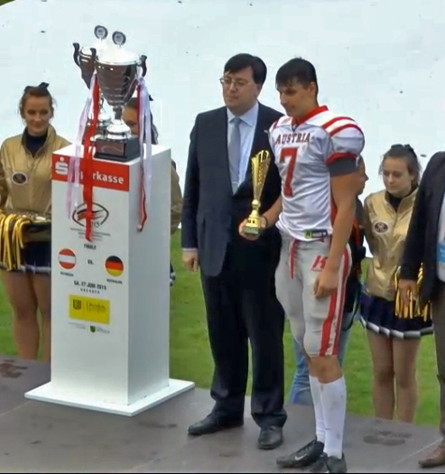 Itävalta on kolmannen kerran peräkkäin U19 Euroopan mestari. Finaaliturnauksen yllätyksestä vastasi Tanska, joka voitti Ranskan pronssiottelussa. Tanskan ja Ranskan välinen pronssikoitos pelattiin sateisissa olosuhteissa Dresdenin Dresden Heinz-Steyer Stadion stadionilla. Ottelu oli tasaista vääntöä. Varmasti pelannut Tanska teki maalipaikoista pisteet ensimmäisellä ja neljännellä jaksolla. Keskushyökkääjä Daniel Juul Kwei-Ofori oli keskeisessä roolissa viimeistelemällä 18 jaardin maalin. Tanskan puolustus säkitti keskinkertaisesti pelanneen Ranskan pelinrakentaja Gregorie Noelin neljästi. Takakentällä Albert Rungholm katkaisi syötön kahdesti tanskalaisten riemuksi. Loppuottelussa Itävallan rakettimainen keskushyökkääjä Anton Wegan teki ottelun ensimmäisen maalin 55 jaardin pituisella juoksulla. Itävallan team MVP:nä palkittu Wegan viimeisteli vielä toisen osuman. Wegan pyrähti seitsemällä pallonkannolla yhteensä 83 jaardia sekä otti neljä heittoa kiinni. Itävallan hyökkyslinjassa pelasivat kolossimaiset Araz Kaffaf, Moriz Schildorfer, Dominic Spielmann, Sebastian Shaar ja Benjamin Schmied. Ryhmä pelasi mainiosti yhteen ja rusikoi aukkoja myös toiselle pallonkantajalle Sandro Plazgummerille. Hän eteni 121 jaardia 7,6 jaardin keskiarvolla. Finaalia seurannut 1100 katsojan joukko näki kuinka Saksa oli ottelussa hyvin mukana puoliaikaan asti, jota se johti 7-10. Toisella puoliajalla Itävallan hyökkäys pelasi lähes virheettömästi ja teki kolme maalia. Itävaltalaisten toinen iso tekijä finaalissa oli juoksupuolustus. Saksa eteni vain 32 jaardia. Tukimies Sebastian Ried taklasi ottelussa seitsemän kertaa. Saksan parhaan palkittiin laitahyökkääjä Amon-Ra St. Brown, jonka viimeisin joukkue on ollut Mater Dei high school Kaliforniassa. Hän pelasi tehokkaasti ja otti yhdeksän qb Weinreichin heittoa kiinni. Saksan puolustuksesta N Gustav taklasi 8 kertaa. Ottelussa näkyi Itävallan miesten ja U19 maajoukkueiden päävalmentaja Jakob Dieplingerin kädenjälki. Urheilulliset nuorukaiset toteuttivat kylmän rauhallisesti valmentajiensa pelisuunnitelmaa ja olivat siinä Euroopan parhaita. |