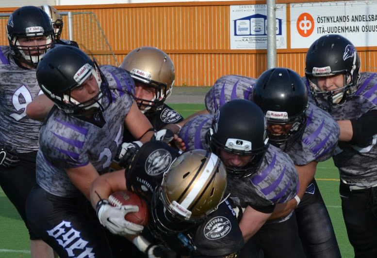Helsinki 69ersin aloitti kauden erittäin lupaavasti kukistamalla Trojansin. Tämän jälkeen joukkueen hyökkäyksen Batman-duo qb Oskar ja wr Robin Drockila ovat olleet poissa jenkkifutiksen seikkailukentiltä loukkaantumisten takia. Drockilan veljesten yhteenpelaaminen on ollut tehokasta ja tuonut paljon pisteitä vuosien varrella. HC Kai Lindbladin luotsaama ryhmä omaa kuitenkin kovia palloilijoita, joista #21 Roope Reiman ja #18 Timofei Telov ovat saaneet pelata koko lisenssirahalla. rb&lb #35 Alexander Wasiljeff on isossa roolissa joukkueen peleissä. Vaahteraliigassa safetyn pelipaikalta tuoma kokemus on tuonut kosolti varmuutta otteisiin. Toinen puolustuksen tukipilari #34 Oliver Ndallamah on myös kerännyt 69ersin miesten joukkueesta lisää kovuutta. Jäljellä olevatt ottelut tulevat olemaan vaativa koitos linjamiesyksikölle, jossa kahteen suuntaan pelaavat #68 Miro Salminen, #65 Eppu Kiiskinen, #64 Joonas Järvenpää, #63 Frank Saviluoto, #99 Martin Morander ja #56 Henri Saarinen. Turku Anders Trojans päävalmentaja Achraf M' Saknilla on käytössään taitava pelaajakaarti, joka pelaa ottelu ottelulta paremmin. Produktiivinen heittotandem pelinrakentaja #8 Heikki Toivola ja laitahyökkääjä #5 Markus Haapasaari on tehtaillut maaleja tärkeisiin paikkoihin. Mitalipeleissä heittojen kohteeksi nousee entistä enemmän #23 Kalle Kilickesen ja uusi tähdenlento #17 Veikka Kuisma, koska Haapasaari siirtyy kokeilemaan vauhtiaan USA:n high school liigoihin. Vaahteraliigassa muutaman kannon verran hartioitaan kolautellut #25 Thach Mai Tri on yksi sarjan vaarallisimmista keskushyökkääjistä. Rb #10 Eemeli Valkamo on tehnyt joukkueensa maaleista pääosan. Puolustuksen linja on kokonaisuudessaa mahdollisesti sarjan paras. Vauhdikkaiden endien #88 Jussi Veijula ja #55 Olli Jokelan säkkijahteja on virkistävää seurata. Isot miehet d-linjassa #61 Otto Oinonen, #69 Mikko Rajala, #64 Riku Savolainen ovat kykeneviä tukkimaan juoksuvastuunsa. Tukimies Markus Korpela on puolustuksen tukipilari ja taklauskuningas. Takakentällä omian tonttejaan ovat tiiviisti ilmapuolustaneet db:t #32 Oskari Myllykoski ja #22 Jussi Tirkkonen.