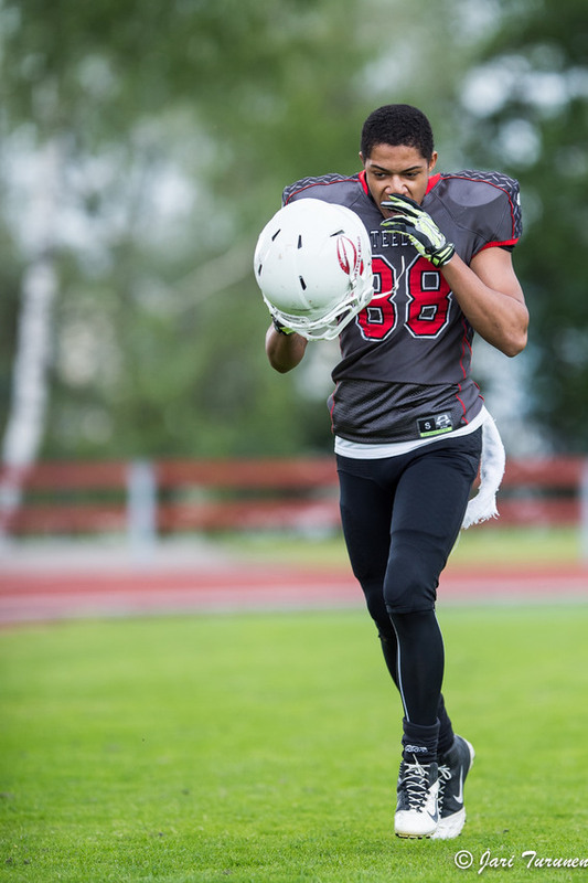 U19 7vs7 SM - Sarjataulukko 2015 runkosarja Joukkue Ottelut Voitot Häviöt Tehdyt Päästetyt Maalisuhde Pisteet Espoo Wolverines 4 4 0 133 76 57 8 Roosters 4 2 2 133 123 10 4 Steelers 4 1 3 102 125 -23 2 Ghosthunters 4 1 3 100 144 -44 2 Espoo Wolverines hakee menestystä isolla rosterilla, jolla olisi pärjännyt 11vs11 sarjassakin. Päävalmentaja Peetja Mannilan käytössä oleva tasainen ja laaja materiaali onkin tehnyt Ahmoista voittamattoman tähän mennessä. Wolverinesin riveissä on lupaavia pelaajia. #2 Hannu Nyman on tehnyt maaleja niin keskushyökkääjänä kuin potkujenpalauttajana. Räjähtävä lähtö ja hyvä pallonkantoasento tekee Nymanista vaikean taklattavan. Velipoika #29 Lassi Nyman pitää puolustusta pystyssä liberon roolissa. Varma taklaaja ja hyvä sijoittautuja ymmärtää pallon kulkureitit. Ol/dl #53 Aleksi Olavuo on palannut tauon jälkeen vahvalla linjapelaamisella keinonurmikentille. Hänen vierellään on toinen kookas linjamies #65 Oskari Lahtinen (196cm, 126kg). Vaihto-oppilaaksi lähtevät #17 Veeti Heikkinen ja #41 Oskari Andersson jättävät takentälle puutteita. Puolustuksen kovaotteinen keskimmäinen tukimies #69 Petteri Tuominen on tehnyt joukkueestaan eniten taklauksia.