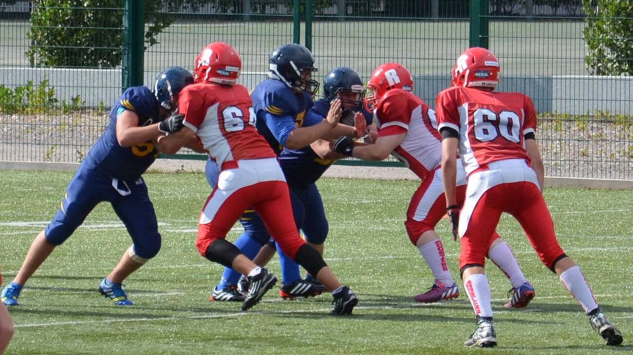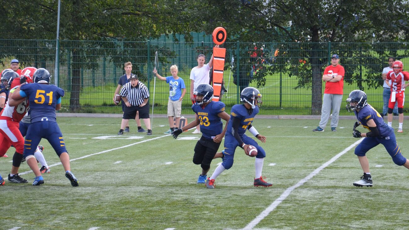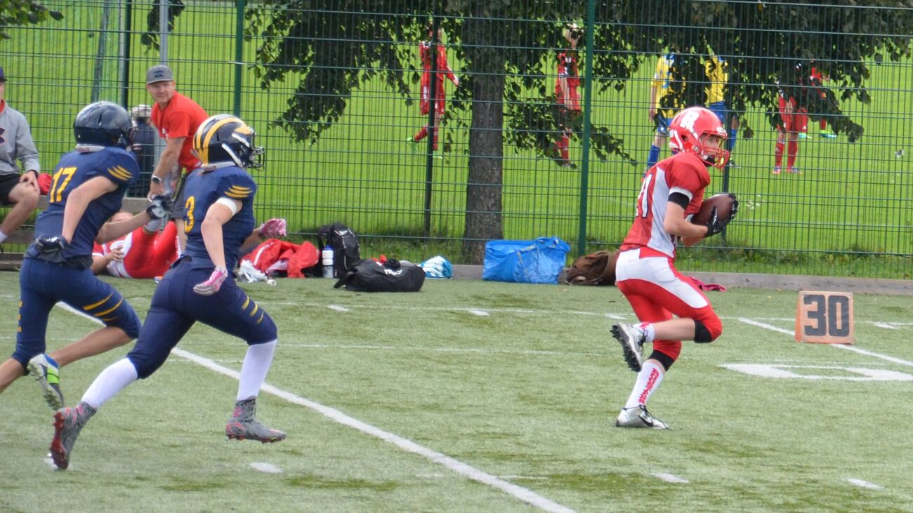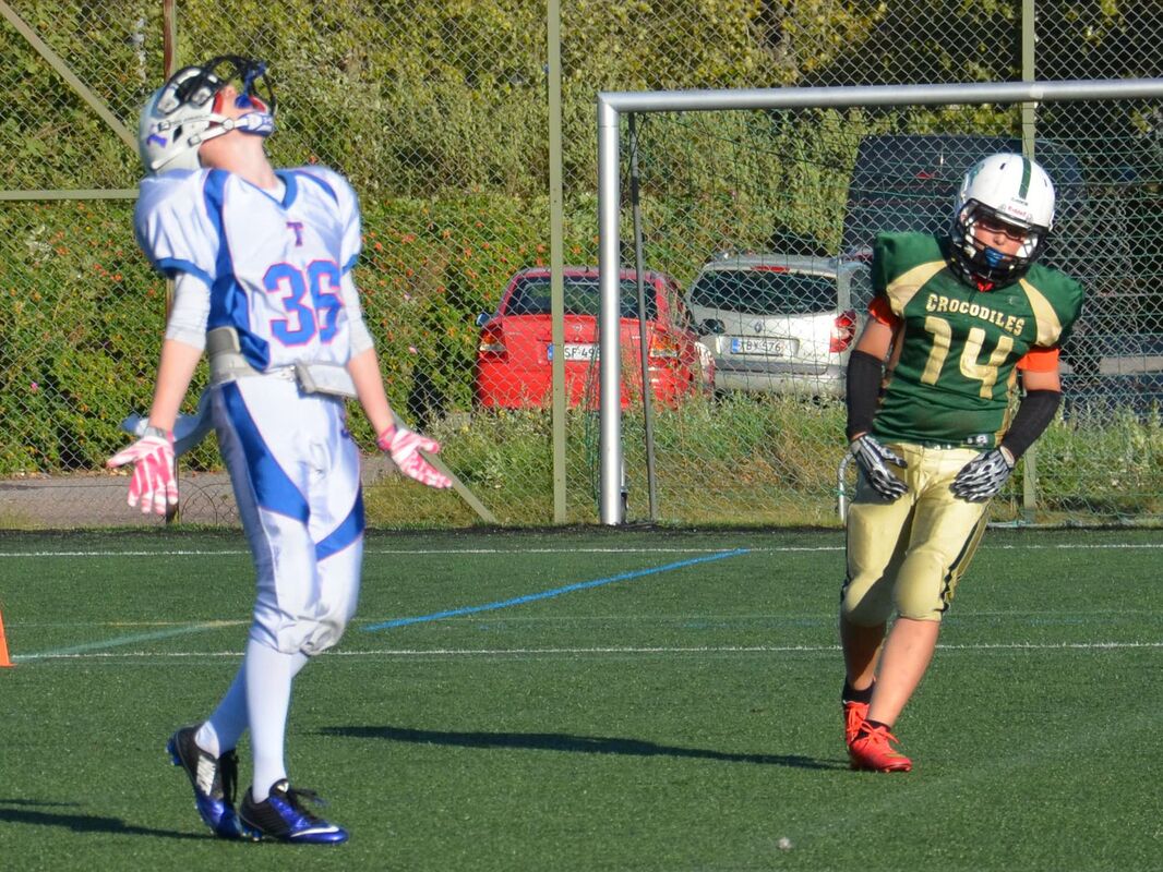 Vantaa TAFT sai pelata täydet neljä neljännestä kunnes selvisi tiukasta välieräottelusta Seinäjoki Crocodilesia vastaan. Ottelu oli juoksuvoittoinen, kun molempien joukkueiden ykköspelinrakentajat olivat sivussa loukkaantumisten vuoksi. Eroksi ottelussa muodostui TAFT:in tuotteliaampi heittopeli, jonka avulla joukkue teki pienen eron Crocodilesiin. Vantaalaiset heittivät kolme maalia, joista ensimmäisen se teki tärkeään paikkaan toisen neljänneksen loppuun. Heiton vastaanottajana toimi mallikkaasti pelannut laitahyökkääjä Eemeli Tuovinen. TAFTin hyökkäyslinja Jasper Linqvist, Santeri Saastamoinen ja Jere Vierikkoon hitsaantunut kauden aikana hyvin yhteen. Timo Tuokon päävalmentama Crocodiles pysyi perusfudiksellaan hyvin mukana ottelussa. Terävästi liikkuva keskushyökkääjä Nwosu Uche, tasoitti ottelun kahdella maalillaan neljännellä jaksolla linjamieskaksikko Jere Saranpää ja Konsta Sillanpää blokatessa sisukkaasti väyliä. Crocodiles haki vielä 17 sekuntia ennen loppuvihellystä vimmatusti tasoitusta, mutta pallo päätyi vantaalaisten käsiin. Lopputulos 20-14 (8-0) vantaalaisten hyväksi. Toisessa välierässä Helsinki Roosters otti selkävoiton Espoo Wolverinesista. Helsinki-läisten voimapelaaja oli pallonkantaja Edvard Vesterinen, joka oli vaikea pysäytettävä. Vesterinen teki ottelun kaksi ensimmäistä maalia. Linjapelaamisessa onnistui puolestaan Turkka Västrik, jonka selän takaa Vesterinen kahmi jaardeja. Pelinrakentaja August Wahlstein oli myös pelipäällä ja heitti onnistuneesti Vilho Paavilaiselle pitkiä siivuja. Paavilainen teki näyttävän maalin toisella neljänneksellä. Espoo haki toista peräkkäistä finaalipaikkaa U15 sarjassa. Joukkue ei saanut rytmiä päälle omaan hyökkäykseensä, sillä Roosters tukki juoksupelit tehokkaasti kärkitaklaajana Kim Saarijärvi. Espoolaisille jää kuitenkin hyvästä kaudesta muistoksi pronssimitalit ensi vuonna joukkueella on käytössään kelpo hyökkäyskaksikko Matias Kutvonen ja Sebastian Lugora. Roosters finaaliin 32-8 (24-0). Mark Collierin valmentama TAFT kohta Christian Wahlsteinin Roostersisn finaalissa, joka pelataan klo 18.00 maanantaina 7. syyskuuta Tikkurilan Urheilupuistossa, Läntinen Valkoisenlähteentie 58, 01300 Vantaa. Finaalitapahtuma facebookissa U15 7vs7 runkosarjan voittaja on Helsinki Wolverines. Välieräparit selviävät viimeisen runkosarjakierroksen jälkeen.