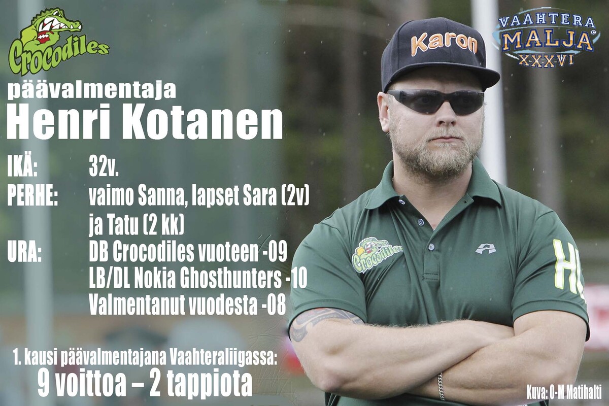 Crocodiles-valmentaja haluaa palauttaa Vaahteramaljan Pohjanmaalle 14 vuoden tauon jälkeen. Seinäjoki Crocodiles on pelannut nousujohteisen kauden. Kaikki eivät talven aikana uskoneet Crocodilesin yltävän edes mitalipeleihin, mutta päävalmentaja Henri Kotasen ja kokeneen valmennusryhmän johdolla koko kevään vahvistunut joukkue nousi runkosarjan voittoon. Nyt Crocodiles valmistautuu Vaahteramaljaan Helsinki Roostersia vastaan eikä ole hävinnyt kahteen kuukauteen. Viime lauantaina välieräottelussa Crocodiles joutui kuitenkin tekemään täyden työn Helsinki 69ersia vastaan. Vasta päätösneljänneksellä pohjalaiset irtosivat 28–7 -voittoon. –Kenttä oli liukas eikä kastunut pallo sallinut pitkää heittopeliä. Oma pelimme rauhoittui, kun saimme pisteitä taululle, Kotanen analysoi sateen kastelemaa välierää. Lauantaina Kotanen marssittaa Vaahteramaljaan monipuolisen Crocodiles-hyökkäyksen, jota johtaa kauden aikana 32 touchdownia heittänyt pelinrakentaja Justin Sottilare. – Pystymme tekemään kovia suorituksia jokaisessa pelissä. Meidän hyökkäys ei pysähdy siihen, että puolustaa kaksi laitahyökkääjä pois. Timothy Thomas, Harry Innis, Spencer Cutlan, Vili Rajamäki ja Yann Dika-Balotoken – ei sieltä ketään voi tuplata. Dika-Balotoken oli välieräottelun näkyvin hahmo. Ranskan maajoukkuepuolustaja eteni laita- ja keskushyökkääjänä 148 jaardia ja teki kaksi touchdownia. – Hän on meidän hyökkäyksen 12. pelaaja, joka tulee lomittamaan sitten, kun tarvitaan. Olisi väärin olla käyttämättä hänen kaltaistaan urheilijaa, Kotanen kuvailee. Crocodilesin nopeajalkainen keskushyökkääjä Damonshay Pitt satutti jalkaansa välieräottelussa, mutta on Kotasen mukaan finaalissa täydessä pelikunnossa. – Pitt otti kesken pelin vähän jääpussia ja mehua ja palasi jo tuolloin takaisin peliin. Roostersin puolustuksen linja on pelannut vahvasti viimeisen kuukauden ajan. Tämä ei Kotasta huoleta: – Damonshay ei tarvitse kauan juoksuaukkoa. Pelataan pelit niin kuin ne on suunniteltu. Se riittää myös Roostersin linjaa vastaan. Roostersin hyökkäyksen pysäyttämiseksi Crocodilesilla on selvä marssijärjestys. Keskushyökkääjä Jaycen Spearsin ja pelinrakentaja Micah Brownin juoksut täytyy ensin ottaa pois. – Näen, että juoksu on Roostersin juttu. Aika moni peli rakentuu Spearsin kautta olipa sitten kyseessä juoksu tai lyhyt heitto. Spearsin on pakko olla merkattu mies. Crocodilesin puolustus päästi runkosarjassa vähiten pisteitä. Vastustajat saattoivat edetä, mutta maalialueiden lähellä vihreä seinä tiivistyi. Red zonella Crocodilesia vastaan tehtiin vain kahdeksan touchdownia. – Puolustuksemme vahvuudet korostuvat lähellä maalialuetta. Painetta antava linja, jolla saadaan aika pois, ja takakenttä on riittävän hyvä pitämään laitahyökkääjät kurissa, Kotanen listaa. Tilastojen valossa Crocodiles on yksi 2000-luvun menestyneimmistä Vaahteraliiga-joukkueista. Vuonna 2003 joukkue oli neljäs ja vuonna 2008 viides. Muuten tällä vuosituhannella Pohjanmaalla on juhlittu mitalia joka vuosi kauden päätteeksi. Vaahteramalja on kuitenkin päätynyt Crocodilesille vain kerran. Tämä tapahtui vuonna 2001, jolloin Roosters kaatui Velodromilla 15–13. Nyt samat joukkueet kohtaavat loppuottelussa 14 vuoden tauon jälkeen. – Löytävätkö fanit perille? Saadaanko Helsinkiin kunnon tunnelma? Kotanen kysyy. Hän tietää, että Crocodiles tarjoaa lauantaina nähtävää.