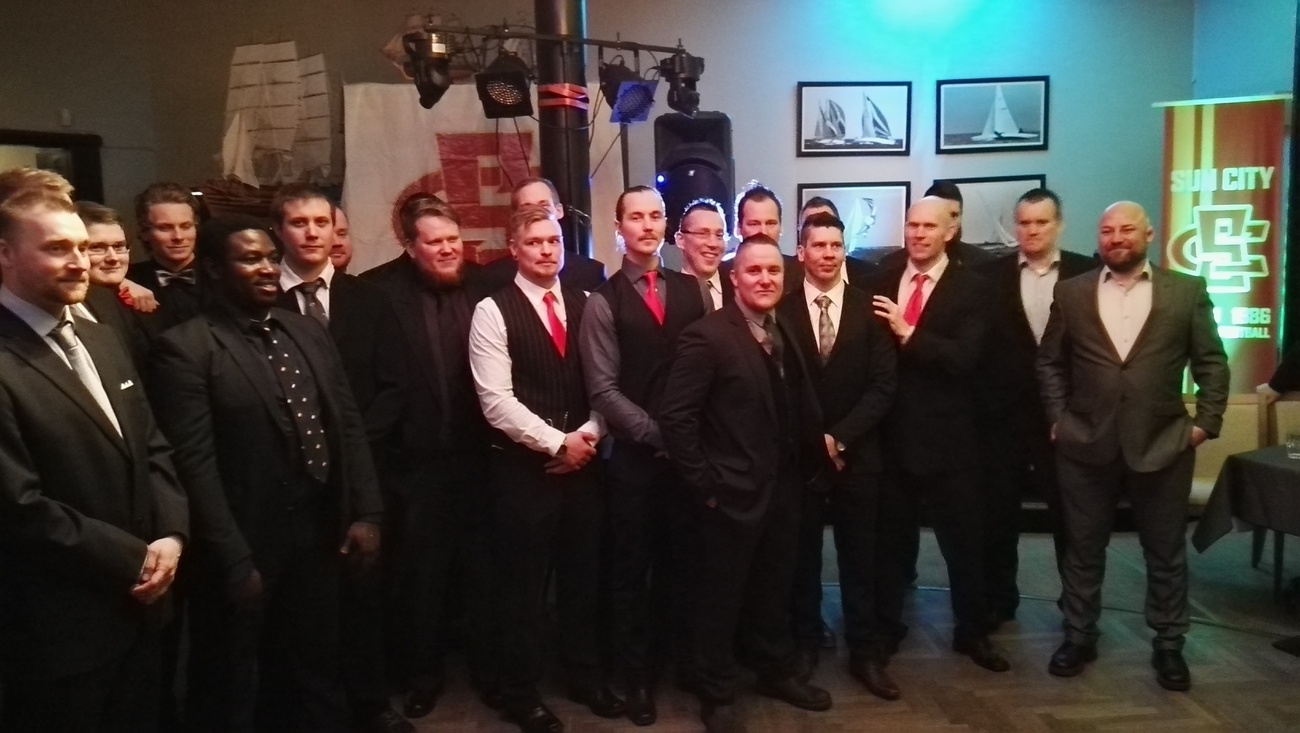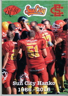 Suomen eteläisin amerikkalaisen jalkapallon joukkue Hanko Sun City juhli 30 vuotta kestänyttä taivaltaan lauantaina 27.2.2016 ravintola HSSF:llä Hangossa. Sali oli täynnä entisiä ja nykyisiä pelaajia, valmentajia ja kannattajia. Seuran puheenjohtaja Robert Hotanen kertoi seuran nykytilanteesta ja juhlavuoden suunnitelmista. Tulevaisuudessa hän näkeekin naisten ja nuorten joukkueiden perustamisen yhtenä tärkeänä osana. Päävalmentaja Toni Andersson kertoi tämän vuoden joukkueen rakentamisesta. Joukkue on vahvistunut sopivasti ja hänellä on kova luotto, että joukkue päätyy Rautamaljaan tänä vuonna. Uusin pelaajavahvistus on pelinrakentaja Eino Matikainen, jolta löytyy niin maajoukkue- kuin Vaahteraliigakokemusta. Illan aikana kuultiin hauskoja puheenvuoroja menneiltä vuosilta. Alkuvuosien pioneeripelaaja Joni Näsänen kertoi kuinka alkuaikojen harjoitukset Ankkalammen puiston lannoitetulta nurmikolta siirtyivät lopulta tasokkaalle Rukki Areenalle. Seura keräsi alkuvuosina kovasti varoja mm. järjestämällä tuottoisan grillin Hangon Regatan yhteydessä. Liiton virallisen tervehdyksen toi Heikki Halttunen, joka samalla kiinnitti SAJL:n pronssisen ansiomerkin seurassa pitkään toimineelle Asko Kokkoselle. Sun City palkitsi pitkän linjan erotuomari Keijo Suomisen sekä Toni Anderssonin, joka lukeutui seuran alkujakson huippupelaajiin ja toimii nykyisin seuran päävalmentaja. Entinen päävalmentaja Kari Ketonen toi vanhan Be A Hammer -perinnepalkinnon uusiokäyttöön. Kauden 2015 Hammer -pelaajaksi palkittiin Joakim Lindholm. Juhlissa julkistettiin myös toimittaja Mikael Heinrichsin kirjoittama ansioitunut, lähes 100-sivuinen Sun City Hanko 1986-2016 -teos. Hankolaisten thunder -taisteluhuuto kaikui illan aikana useaan otteeseen.