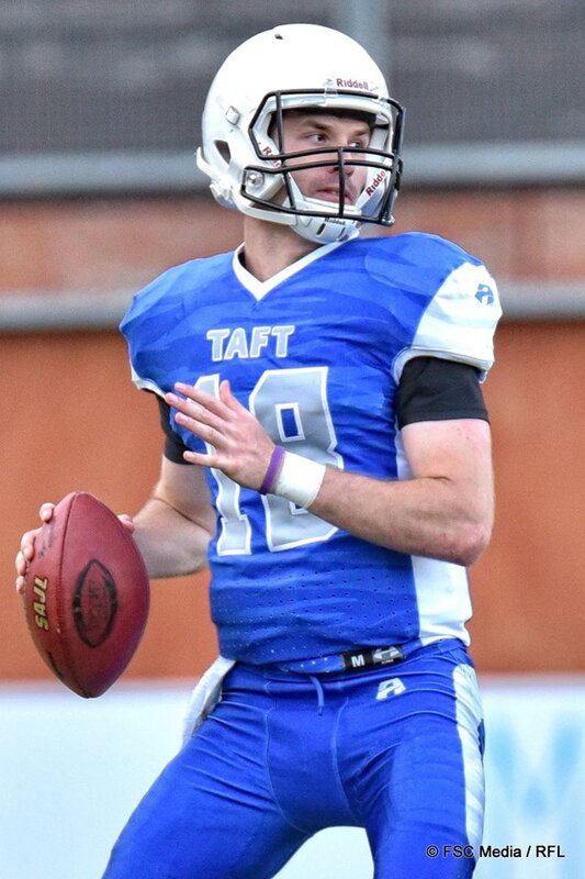 ![]() Jenkkitukimies Cameron Grad (vas.) ja kulmapuolustaja Rufail Khalifa kuuluivat Royals-puolustuksen onnistujiin perjantaina. Kuva: FSC Media ![]() TAFT-pelinrakentaja Cole Webb saapui Suomeen vasta tiistaina eikä vaasalaispuolustuksen paineessa vielä löytänyt täysin yhteyttä laitahyökkääjiensä kanssa. Toisella puoliajalla Webb kuitenkin näytti heittokätensä tarkkuutta erityisesti Cedric Johnsonin suuntaan, minkä lisäksi Webbin omasta juoksunopeudesta saatiin ottelussa nähdä viitteitä. Kuva: FSC Media |