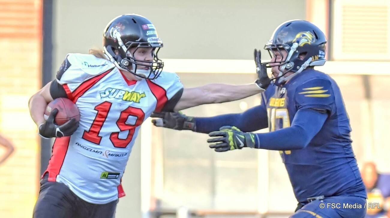Wolverines – Huskies 28–7 (21–7) Brahenkentän taistelu perjantai-iltana Helsinki Wolverinesin ja Hämeenlinna Huskiesin käynnistyi suuren mielenkiinnon saattelemana. Ennakkoon kaksikon on veikattu kohtaavan kauden päätteeksi Spagettimaljassa, ja avauskierroksen ottelun voittajasta veikataan kaudelle suurinta ennekkosuosikkia. Tasaisesti käynnistyneen ottelun avausneljänneksen hallinta oli Wolverinesin. Ensimmäisellä hyökkäysvuorollaan parhaimmillaan jaardin päässä maalialueesta käynyt kotijoukkue päätti vuoronsa lopulta epäonnistuneeseen kenttäpotkumaaliyritykseen, mutta seuraavalla yrittämällä kotijoukkue ei aikaillut vaan Janne Lehtisen heitosta Niko Kantonen teki I-divisioonakauden avaus-touchdownin. Toisella neljänneksellä nähtiin touchdown-tuuletuksia enemmänkin. Wolverinesin ykköstaklaaja Ari Päivärinta (9,5 taklausta) iski pallon irti Huskies-pelinrakentaja Lari Siitosen käsistä ja Jarmo Nyberg palautti irtopallon suoraan touchdowniksi. Huskiesin hyökkäyksestä erottui perjantaina nopeajalkainen britti-keskushyökkääjä Xavier Ajuwon, joka keräsi illan aikana 107 jaardia ja teki toisella neljänneksellä hämeenlinnalaisten ainoan touchdownin. Koko ottelun ykköshahmo oli puolestaan viimevuotista seuraansa vastaan pelannut Jerrell Jones. Yli 10 jaardin keskiarvolla pallon kanssa taivaltanut Jones nettosi lähes 200 jaardia ja vei touchdownillaan Wolverinesin 21–7 -puoliaikajohtoon. Toisella puoliajalla nähtiin lopulta ainoastaan yksi touchdown, kun heti kolmannen neljänneksen ensimmäisellä hyökkäysvuorolla Lehtinen löysi vapaana Marcus Siiskosen, joka vei pallon maaliin. Huskies puolusti tarkasti Wolverinesin australialaislaitahyökkääjää Locklan Gilbertiä, mutta Lehtinen jakoi palloa varsin tasaisesti eri kohteille. Teemu Rantanen ja Siiskonen ottivat palloa kiinni lähes 30 jaardin keskiarvolla. Jones oli kuitenkin Wolverines-hyökkäyksen pääarkkitehti ja pohjusti kenttäasemia ja pisteitä juoksemalla lähes jokaisella hyökkäysvuorolla yhden yli 20-jaardisen siivun. Huskies lähti otteluun ilman joukkueen ykköspelinrakentajaa ja päävalmentajaa Stan Bedwelliä, jonka valmennuskausi Italiassa jatkuu edelleen. Lari Siitosen johdolla Huskies eteni hyökkäyksessä enemmän kuin Wolverines (317–315) ja piti palloa hallussaan kaksi kertaa enemmän, mutta pallonmenetykset koituivat vieraiden kohtaloksi. Kolme syötönkatkoa ja kaksi menetettyä palloa rähmäyksistä pysäyttivät osan hyökkäysvuoroista varsin lähellä Wolverines-maalialuetta. Wolverinesin puolustuksesta Päivärinnan ohella suurimman taklausmäärän keräsi Antonio Harris (7 taklausta) ja lisäksi kulmapuolustaja Veikko Kallio otti kaksi syötönkatkoa. Huskiesin ykköstaklaajat olivat hämeenlinnalaisjoukkueessa debytoineet Nicholas Madsen ja Tatu Niemi. Yhdysvaltalaistukimies Archibald Barnes taklasi neljästi ja otti muutamaan otteeseen osaa myös Huskies-hyökkäykseen keskushyökkäjänä. – Jones nousi esiin ja teki työnsä ja Siiskonen pelasi hyvän peli, Wolverines-päävalmentaja Robert Johnson kertoi ottelun jälkeen joukkueensa videohaastattelussa. – Kaiken kaikkiaan tämä oli koko joukkueen voitto. – Ei oltu valmiina alussa, Huskiesin päävalmentajana ottelussa toiminut Juha-Matti Jokinen harmitteli ottelun jälkeen. – Ja jos joukkue ei ole valmis, se menee valmistautumisen piikkiin eli valmennuksen piikkiin.