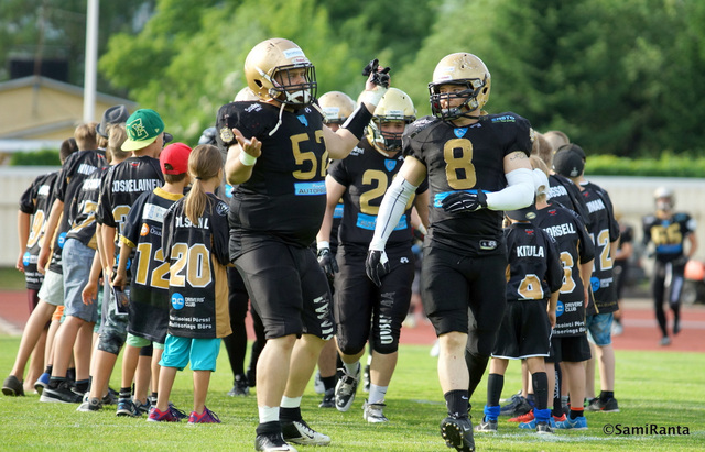 Kaarlen kentälle odotetaan alkukauden yleisöennätystä Vaahteraliigan viidennen peliviikon viimeinen ottelu pelataan Kaarlen kentällä Vaasassa, jossa kotijoukkue Wasa Wa1ld Royals kohtaa Porvoo Butchersin. Ennen sunnuntaita Royals (1-2) on hankkinut kaksi sarjapistettä voittamalla Vantaan TAFT:n. Butchers on edelleen pisteittä hävittyään kahdessa ensimmäisessä ottelussaan ensin Helsinki Roostersille ja reilu viikko sitten Seinäjoki Crocodilesille. Royals taisteli viikko sitten Turussa voitosta loppuun asti ja etenkin vaasalaisten hyökkäys näytti, että pelinrakentaja Isaac Fisherin johtama hyökkäysjoukko on valmiina haastamaan jatkossa minkä tahansa Vaahteraliiga-puolustuksen. – Meidän pitää jatkaa näiden kehitysaskeleiden ottamista, Royalsin päävalmentaja Seppo Evwaraye kertoo. – Motivaatiot ja näytönhalut ovat tällä hetkellä todella korkealla. Nyt kun ollaan kohdattu kaksi kolmesta "huippujoukkueesta", pelaajat ovat heränneet siihen, että pystytään pelaamaan tällä tasolla ihan hyvin ja pystymme voittamaan. Trojansia vastaan Royals-hyökkäys oli useasti maalialueen tuntumassa mutta ei onnistunut niittaamaan palloa maaliviivan yli kuin harvoin. – Nyt pitää vaan sitten oppia olla tekemättä hölmöjä virheitä väärin paikkoihin ja niin sanotusti "finish the deal", kun ratkaisupaikkoja tarjotaan, Evwaraye toteaa. Fisherin ohessa hyökkäyksessä on noussut merkittävään rooliin keskushyökkääjänä esiintyvä tukimies Chris Young, joka Trojansia vastaan juoksi 11 yrityksellä 86 jaardia ja teki yhden touchdownin. – Royalsilla on vähän sellainen perinteisempi hyökkäys, Butchersin päävalmentaja Kari Leivoja kertoo. – Heillä on paljon kahden keskushyökkääjän muodostelmia ja vahvat kotimaiset pallonkantajat. Luonnollisesti paljon hyökkäyksen pelaamiseen vaikuttaa Youngin suoritukset. Lisäksi heillä on vahva linja. – Näkisin, että tässä ottelussa vahvassa roolissa hyökkäyksen puolella tulee olemaan Dmitri Doubitski sekä Phung Nguyen, Evwaraye ennustaa. Doubitski ja Nguyen keräsivät Trojansia vastaan yli 160 edettyä jaardia heittopeleissä. – Porvoo tuo meille perinteisesti ison haasteen, 3-4 puolustuksen, Evwaraye kertoo. – Meillä on aina ollut ongelmia tätä puolustusryhmitystä vastaan. Tämän vuoden uskon olevan poikkeus, sillä käytämme samaa fronttia itse, joten sitä vastaan ollaan harjoiteltu paljonkin kauden alussa. Michael Galantini puolustuksen linjassa ja Tero Kontiainen tukimiehistössä ovat tärkeimmät porvoolaispelaajat pysäyttämään Royalsin juoksupelin. Toni Nyström saattaa asettua kaksintaisteluun Doubitskin kanssa.