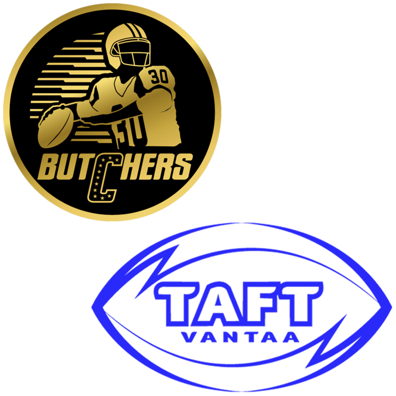 Vaahteraliigan kuudes viikko pyörähtää käyntiin perjantai-iltana Porvoossa, kun vielä toistaiseksi pisteittä olevat Butchers ja Vantaan TAFT pelaavat vastakkain. Ottelua voi seurata suorana lähetyksenä Nelonen Pro - ja Ruutu+ -kanavilla, joissa lähetys käynnistyy ennakkostudioineen kello 18.00. Ennen ottelua sekä Butchersilla että TAFT:lla on matkaa neljänteen sijaan eli viimeiseen pudotuspelipaikkaan neljä pistettä. Vain jompikumpi rikkoo kuparisen ja parantaa samalla huomattavasti sijaintiaan pudotuspelejä ajatellen. – Meidän täytyy voittaa tämä peli, TAFT:n päävalmentaja Stephen Stokes tiivistää. TAFT:lla on allaan kahden ottelun edellisviikko. Maanantaina vantaalaiset johtivat Helsinki Roostersia vastaan vielä päätösneljännekselle siirryttäessä, mutta joutuivat lopulta taipumaan hallitsevalle mestarille lukemin 31–20. Lauantaina Seinäjoelle Crocodiles ei antanut mahdollisuuksia vaan korjasi voiton lukemin 42–0. – Olen ollut liian reilu pelaajillemme, ja se päättyy nyt, Stokes päättää. – Nyt on aika lopettaa poikien pelailu ja alkaa pelaamaan kuten miehet. Butchersilla on edessään kaksi alkukauden tärkeintä ottelua. Perjantain TAFT-pelin jälkeen Butchers pelaa seuraavan kerran jo tiistaina ottelussa Tampere Saintsia vastaan. Jos Butchers voittaa molemmat ottelut, pudotuspelit muuttuvat haaveesta tavoitteeksi. Vastaavasti kahdella tappiolla Butchers käy jatkossa ensisijaisen taistelunsa välttääkseen jäämisen viimeiselle sijalle. – Nämä ovat tärkeitä pelejä kaikki, Butchersin päävalmentaja Kari Leivoja kertoo. – Mitkään pelit eivät ole isosta kiinni, sillä kaikki tuntuvat olevan tänä vuonna tiukkoja otteluja. Siinä mielessä tämä on kiva sarja. Onko juoksupeli sivuroolissa? – Meidän täytyy saada onnistumisia hyökkäyksessä, Stokes kertoo. – Monella pelaajallamme tulee olemaan perjantaina mahdollisuus nousta esiin ja tehdä tärkeitä suorituksia. Tilastojen valossa perjantaina kohtaavat kaksi vähiten Vaahteraliigassa juosten edennyttä joukkuetta. Butchers on edennyt keskimäärin 78 jaardia ottelu kohden ja TAFT vieläkin vähemmän - ainoastaan 48 jaardia 1,9 jaardin keskiarvolla. Yksi ratkaisun kohta saattaa löytyä siitä, kumpi saa juoksupelinsä kulkemaan. Butchersilla juoksupelistä vastaa etupäässä keskushyökkääjä Kemani Jones, joka kuitenkin kohtaa TAFT:n tukimieskaksikon Jim Barryn ja Joel Sislerin. – He ovat todella hyviä linebackereita, Leivoja toteaa. – Barryn aluetta on keskusta ja Sisler liikkuu melkein safetyn tasolla ajoittain. Kurvinen ja Dewing liittyvät Butchersiin Butchers saa perjantain otteluun kaksi merkittävää pelaajaa lisää. Roostersin kokoonpanoon alkukauden kuulunut Ashley Dewing sekä kokenut laitahyökkääjä Ville Kurvinen pelaavat TAFT:ia vastaan kauden ensimmäisen ottelunsa Butchers-paidassa. – Ville on käynyt kevään aikana harjoittelemassa joukkueen mukana ja on hyvässä kunnossa. Hänen kokemustaan ei voi jättää huomioimatta, Leivoja kertoo moninkertaiseen all stars -laitahyökkääjään liittyen. Dewing puolestaan auttaa porvoolaisia akuutissa linjamiespulassa. Pasi Lautala on edelleen sivussa hyökkäyksen linjasta, mutta Leivojan mukaan joukkueeseen liittynyt britti saattaa pelata myös puolustuksessa. – Meillä ei ole hirveästi isoja miehiä. Ashley on pelannut aiemmin Crocodilesissa sekä hyökkäyksessä että puolustuksessa, ja hänestä on apua molemmin puolin palloa. Butchersin hyökkäys on nojannut alkukaudesta pelinrakentaja Trevor Vaseyn johtamaan heittopeliin. Nyt vastassa oleva TAFT:n heittopuolustus on päästänyt liigassa toiseksi vähiten jaardeja mutta toiseksi eniten touchdowneja. Vastaavasti Butchersin heittohyökkäys on heittänyt kolmanneksi eniten jaardeja (203 jaardia/ottelu), mutta selkeästi sarjan heikoimmalla onnistumisprosentilla (36%). Mikko Seppänen nousi viimeistään sunnuntain Royals-ottelussa Vaseyn suosikkikohteeksi. – Olemme puolustaneet hyvin juoksua mutta heittopuolustaminen on ollut enemmän kuin huonoa, Stokes ruotii. – Tarvitsemme enemmän painetta puolustuksen linjalta ja myös takakentän täytyy hoitaa oma hommansa. Puolustuksen linjasta TAFT:lta puuttuu edelleen Henry Elliott. Lisäpainetta odotetaan muun muassa keskushyökkääjä Andre Dahlmanilta, joka aloittaa nyt myös puolustuksen linjassa. Cole Webbin suoritukset paranevat viikko viikolta TAFT:n hyökkäyksessä paljon lepää pelinrakentaja Cole Webbin käsissä. Butchersin heittopuolustus on ollut ajoittain haavoittuvainen, mutta nyt porvoolaisten pitäisi pystyä sulkemaan myös Webbin omat juoksut. – Webbillä on kaikki eväät dominoida tätä liigaa, Stokes kertoo. – Hän on vasta sopeutumassa "Euro-palloon", mutta hänellä on luotto tekemiseen. Siinä vaiheessa, kun pelaajat hånen ympärillään vielä nousevat yhden askeleen ylöspäin, kaikki tulevat huomaamaan tämän. TAFT:n ykkölaitahyökkääjä Cedric Johnson on Leivojalle tuttu pelaaja - pelinrakentajana. – Vantaalla on paljon hyviä talentteja ja olen aina tiennyt, että Cedric on hyvä laitahyökkääjä, Leivoja kertoo Johnsonista, joka toimi Helsinki Wolverinesin pelinrakentajana vuonna 2011, jolloin Leivoja valmensi helsinkiläisjoukkueen Suomen mestariksi. Tulevaan TV-otteluun Leivojalla on yksi ydinviesti Butchersin puolustukseen liittyen: isot pelit pois. – Annoimme Royalsia vastaan viidellä hyökkäyksen pelillä 250 jaardia ja 3 touchdownia. Emme saa antaa sen tapahtua uudelleen. Vantaalla perjantain peliä odotetaan innolla. – Tästä tulee erittäin hyvä TV-ottelu, toteaa Stokes lopuksi. Aloituskokoonpanot: Butchers:| | | Hyökkäys: | | | | Puolustus: | | QB | 2 | Trevor Vasey | | DE | 94 | Petri Pekkanen | | RB | 15 | Kemani Jones | | DT | 1 | Michael Galantini | | WR | 9 | Arttu Erkkilä | | DE | 55 | Jesse Vuoksenturja | | WR | 7 | Daniel Luoma | | LB | 8 | Niko Pennanen | | WR | 11 | Mikko Seppänen | | LB | 92 | Tero Kontiai