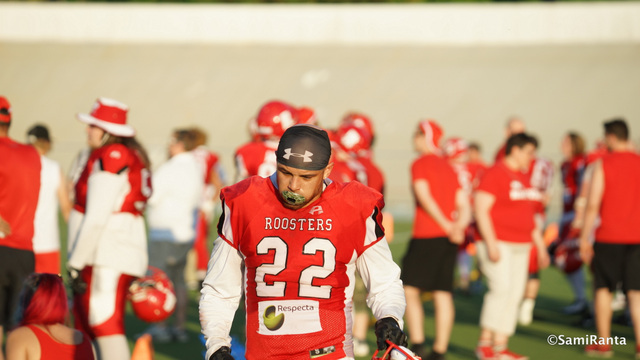 Roosters:| | | Hyökkäys: | | | | Puolustus: | | QB | 3 | Micah Brown | | DE | 62 | Ilari Nikku | | RB | 11 | Jaycen Spears | | DT | 99 | Roope Lindfors | | RB | 37 | Esa Vanhoja | | DE | 97 | Lauri Vainio | | WR | 2 | Bernard Luster | | LB | 35 | Miikka Kokkonen | | WR | 32 | Kimi Linnainmaa | | LB | 68 | Sebastian Karbin | | WR | 85 | Alexander Wasiljeff | | LB | 8 | Niko Kuikka | | LT | 66 | Iiro Luoto | | LB | 43 | Santtu Äyräväinen | | LG | 76 | Richard Laine | | CB | 33 | Ville Roitto | | C | 54 | Mikko Toiminen | | SS | 22 | Curtis Slater | | RG | 65 | Jere Lahti | | FS | 19 | Tuukka Hämäläinen | | RT | 53 | Samuli Vehkomäki | | CB | 4 | Pekka Rantala |